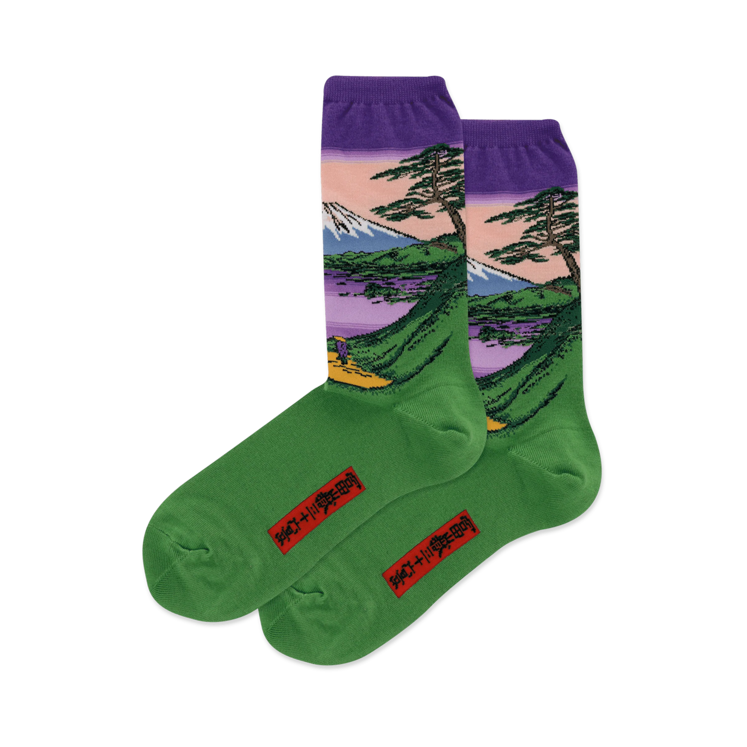 Show your love for Katsushika Hokusai's famous artwork with these crazy cool socks! Each beautiful pair of crew socks features a portion of the painting "A Green Hilly View of Mt Fuji over a Lake" in great detail. The vibrant colors will feel like an art show for your feet!