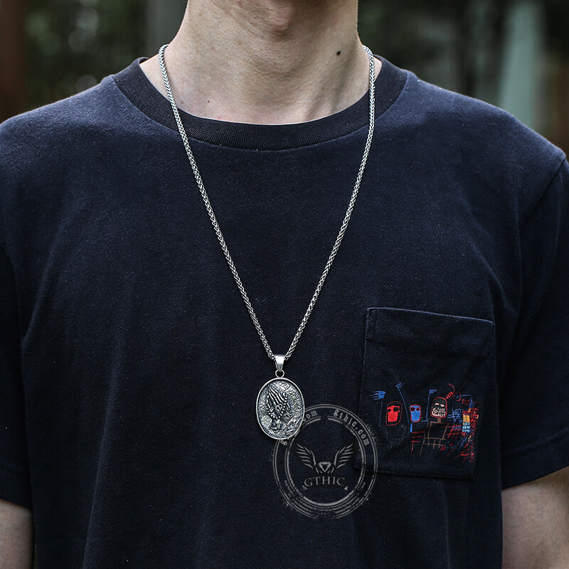 Crafted with stainless steel, the Holy Prayer Christian Pendant features a timeless cross design. This durable and elegant pendant serves as a symbol of faith and devotion. A perfect addition to any outfit, this pendant makes a meaningful gift for any religious occasion.