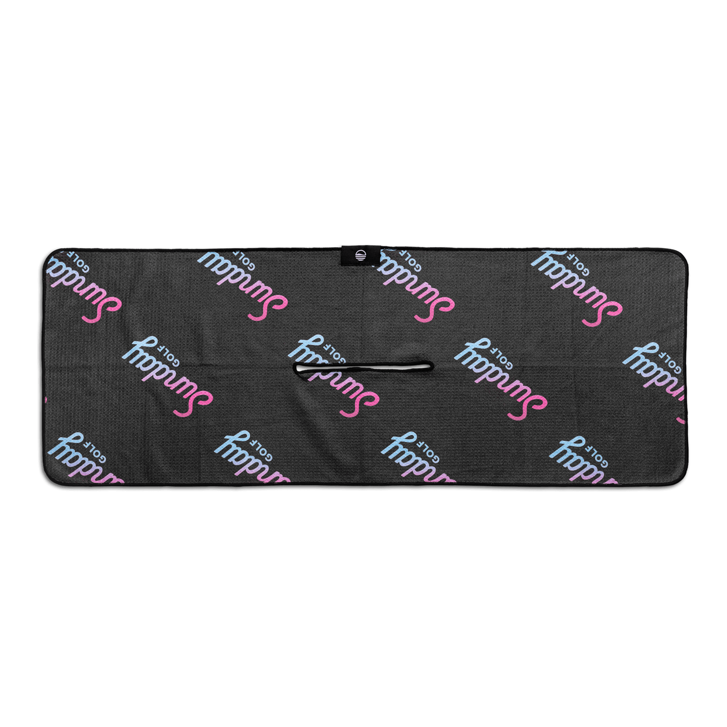 The perfect towel for any golfer who wants to bring the beach party to the course. The Miami Vice golf towel features the Sunday Golf signature Sundaze icon on the front with the color style that reminds you of playing Vice City.
