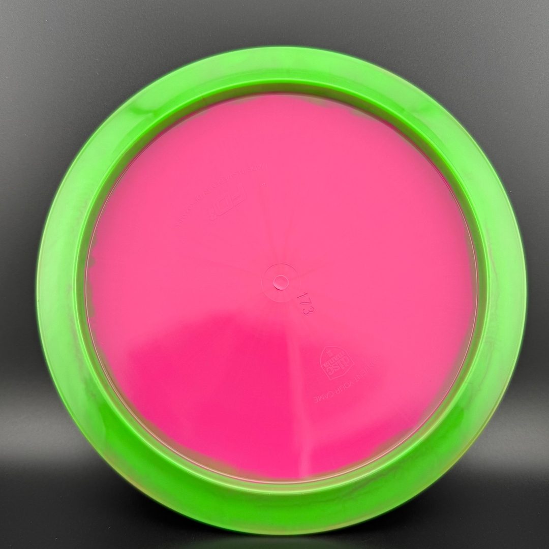 Horizon plastic by Discmania is a decorative blend of S-Line plastic featuring a colorful halo design, where the rim of the disc is a distinctly different color than the center plate. The combination of durability and style make Horizon plastic an excellent choice for disc golfers of all skill levels. Whether you're a seasoned pro or just starting out, the eye-catching design of Horizon plastic is sure to turn heads on the course.