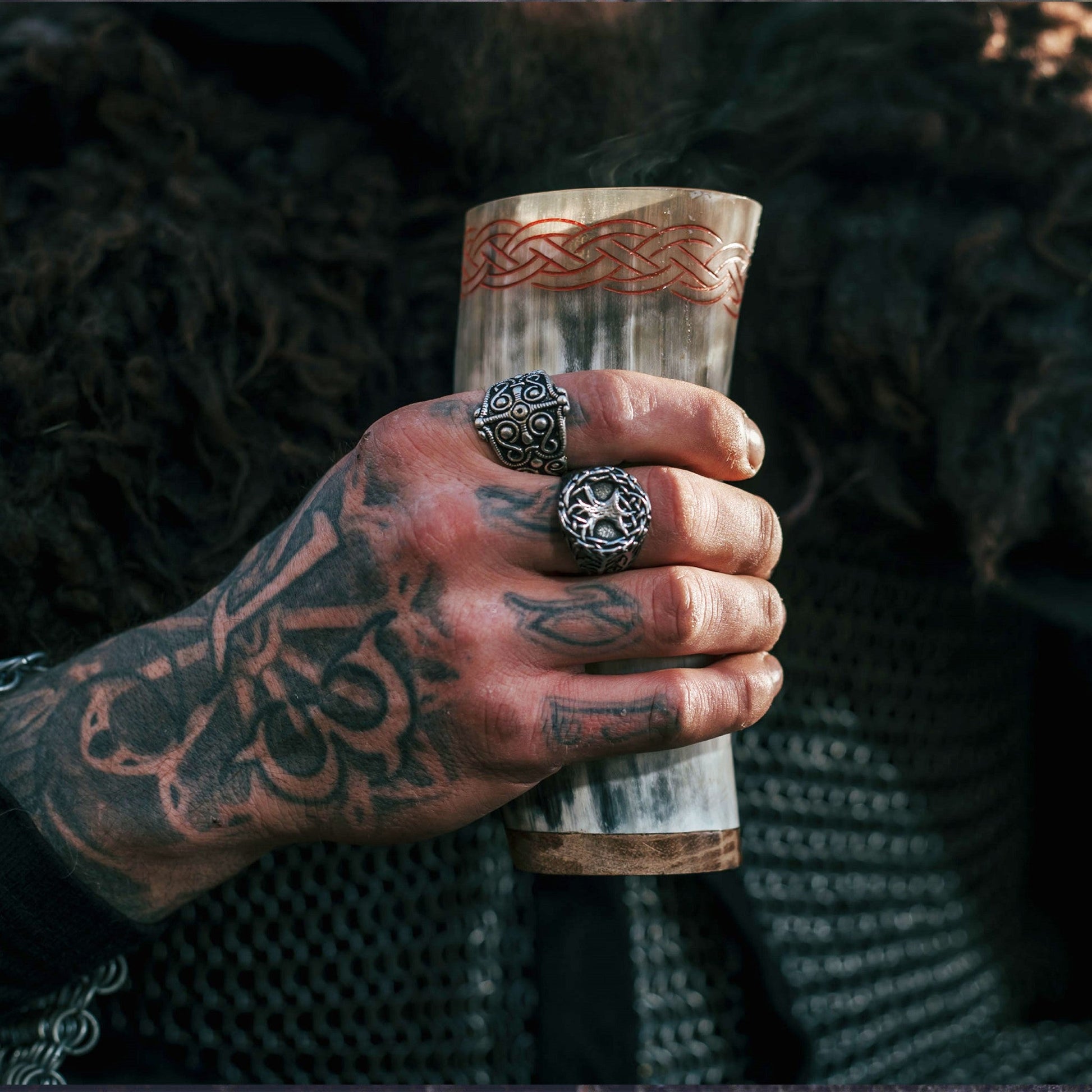 🍻 HAND ENGRAVED CELTIC KNOTS - Each of the four horns included in the set is hand engraved with a beautiful Celtic knot design around the rim of the horn. Then the engraving is carefully filled will red dye, giving it a unique Viking styling worthy of a true chieftain!