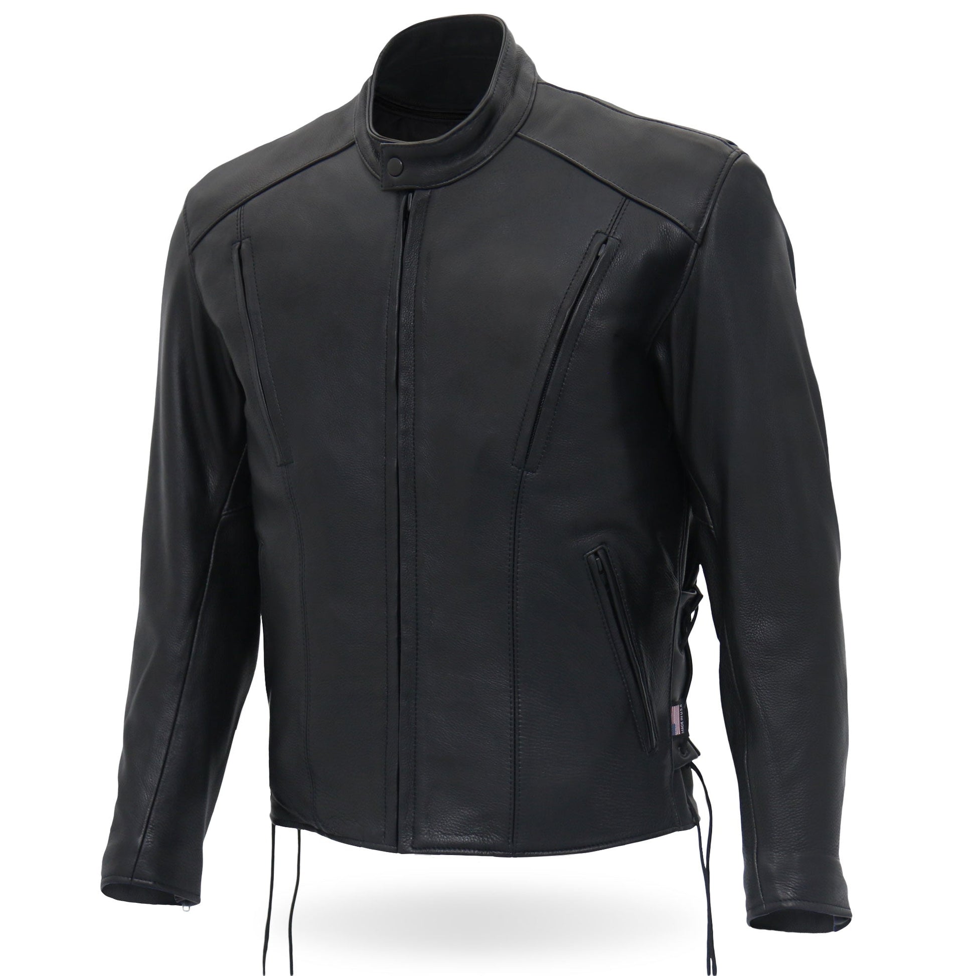 Hot Leathers JKM5002 Men's USA Made Vented Premium Leather Motorcycle Biker Jacket with Side Lace