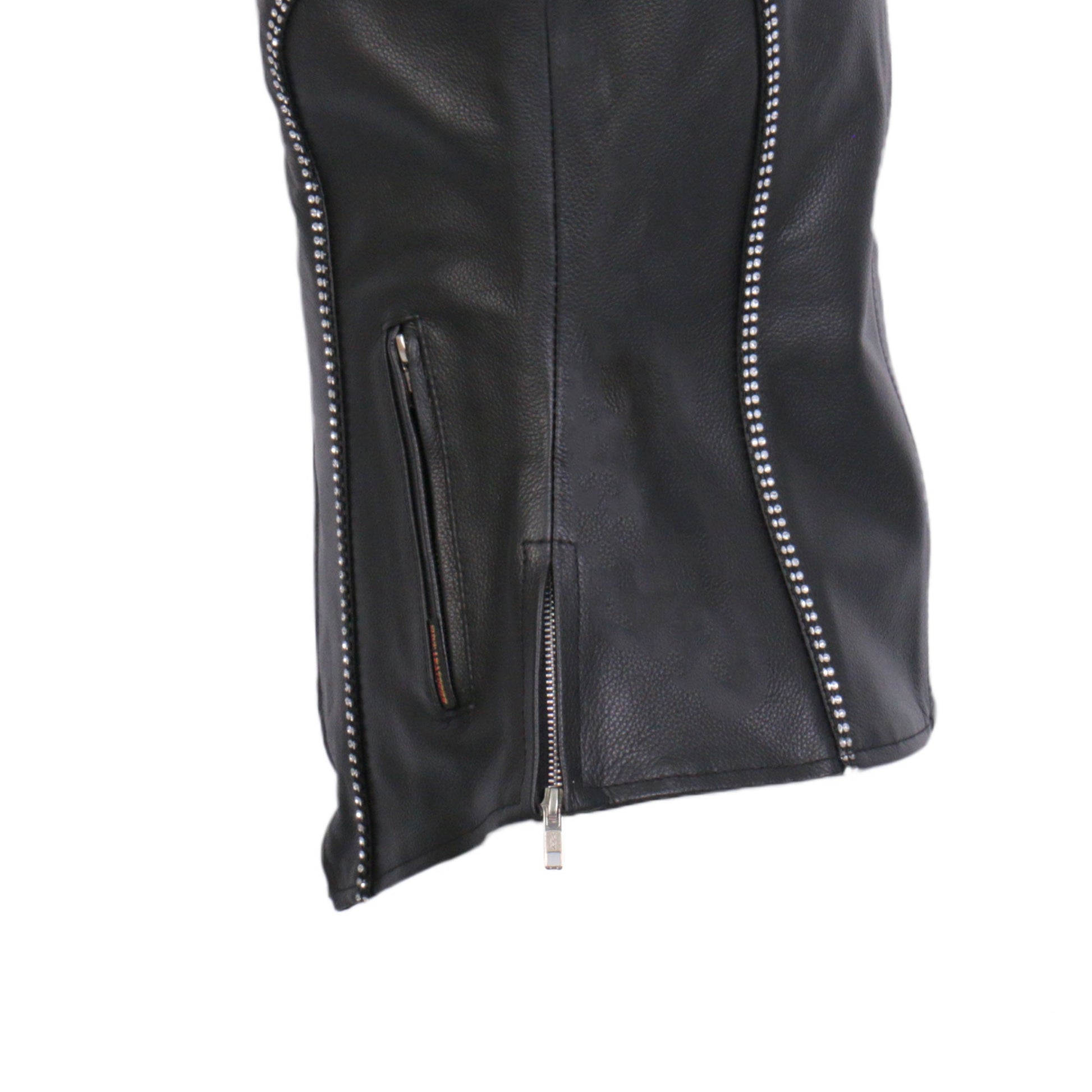 Hot Leathers VSL1016 Ladies Biker 'Rhinestone' Black Leather Motorcycle Vest