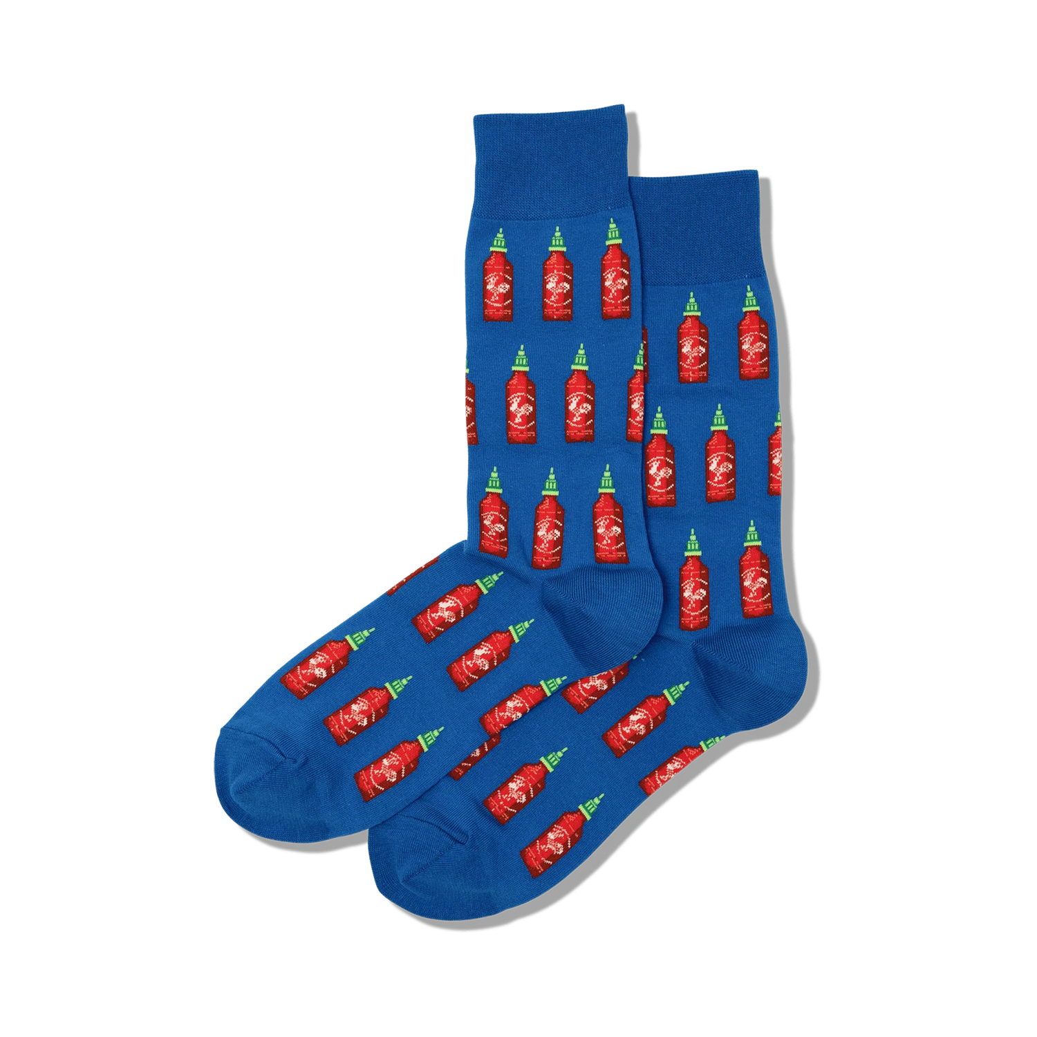 It can be agreed upon that Sriracha is the world's coolest hot sauce! There's a reason why it's so popular- it can spruce up just about every meal you eat! You can put it on eggs, pizza, and burgers...and now also your feet! Each funny pair of women's novelty socks features Sriracha bottles printed all over on a blue background. Spice up your sock drawer and get a pair now!