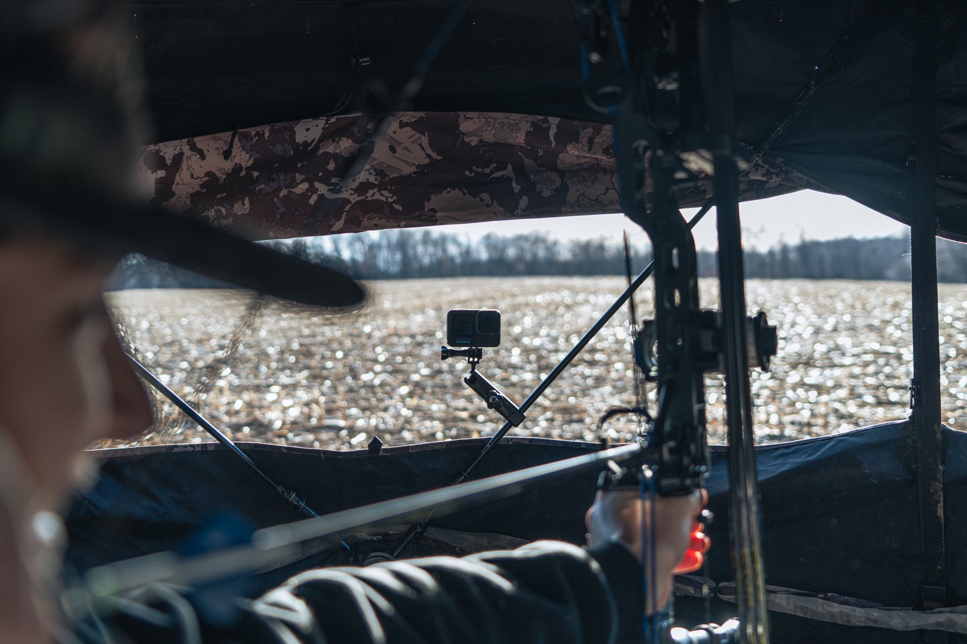 Our specially designed camera mount for hub/ground blinds is here so you can film your hunts with as little effort as possible. Simply clamp the Hub Blind Camera Mount onto the frame of your hub blind and hit record. It is THAT easy. The camera mount was designed for the 3/8" tent rod size but is capable of fitting varying rod sizes slightly larger or smaller. Its mono-ball design allows the Hub Blind Camera Mount to swivel in all directions so that you can film at any angle and in any direction.