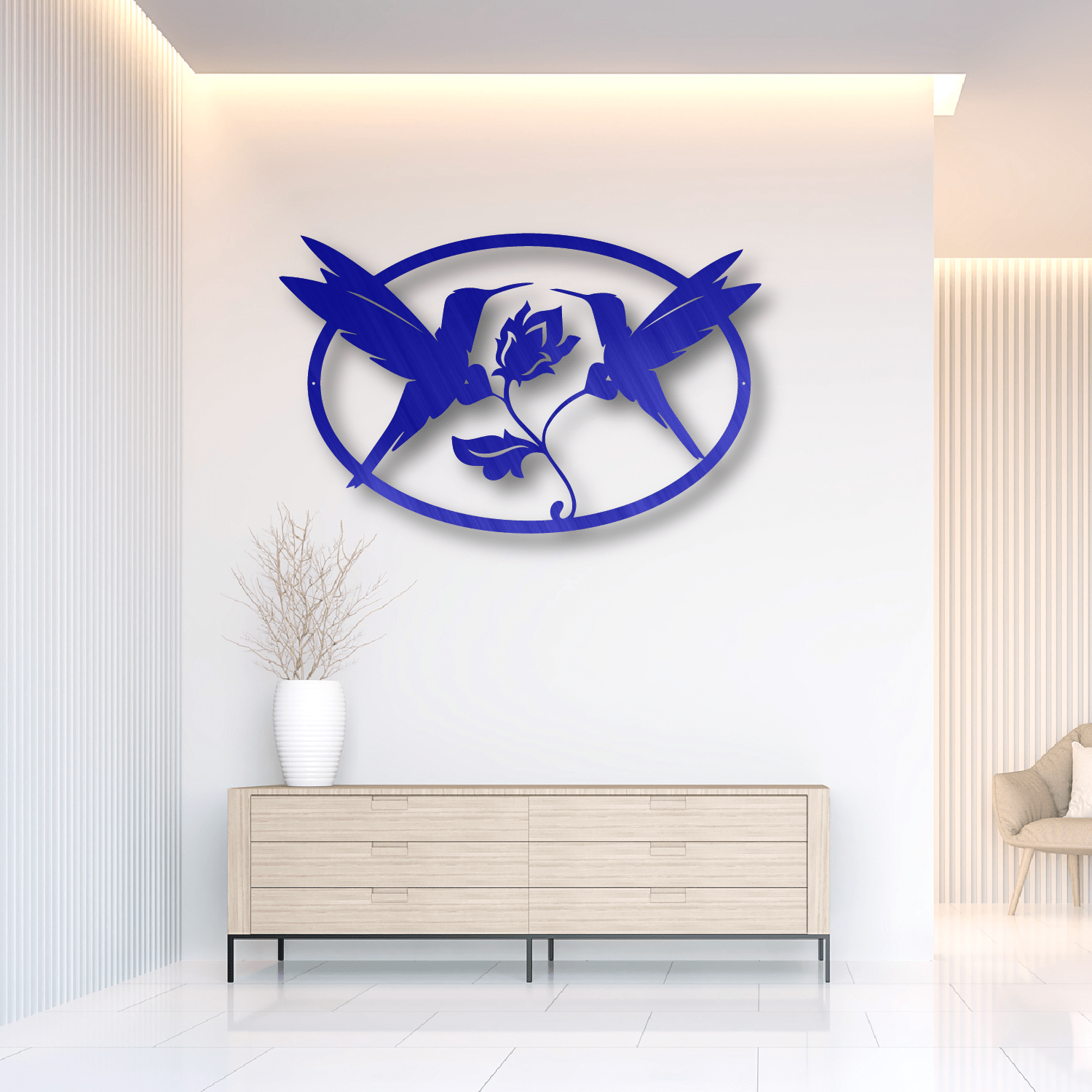 Bring a touch of nature into your home with our Hummingbirds Wall Art. Made from durable 16 gauge steel and coated with powder, this metal art piece showcases beautiful humming birds and a flower in a delicate, circular design. A perfect addition to any room, it's a must-have for bird lovers and art enthusiasts alike.