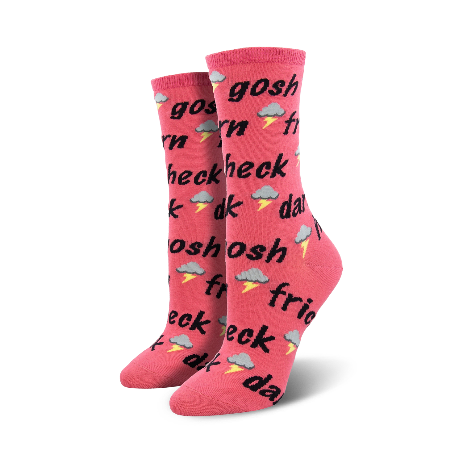 Zap! Bam! Darn! Put on a pair of I Swear socks and watch as your friends gasp, your enemies tremble, and the heavens weep with laughter. These socks ain't just for swearin' ?Ç¥ they're for darlin', goshin', and frickin' your way through life with rainbow-colored thunderbolts and a heaping helping of purple. From the mundane to the downright shocking, these socks got you covered, literally. So, darn tootin', grab a pair and let those toes fly free!
