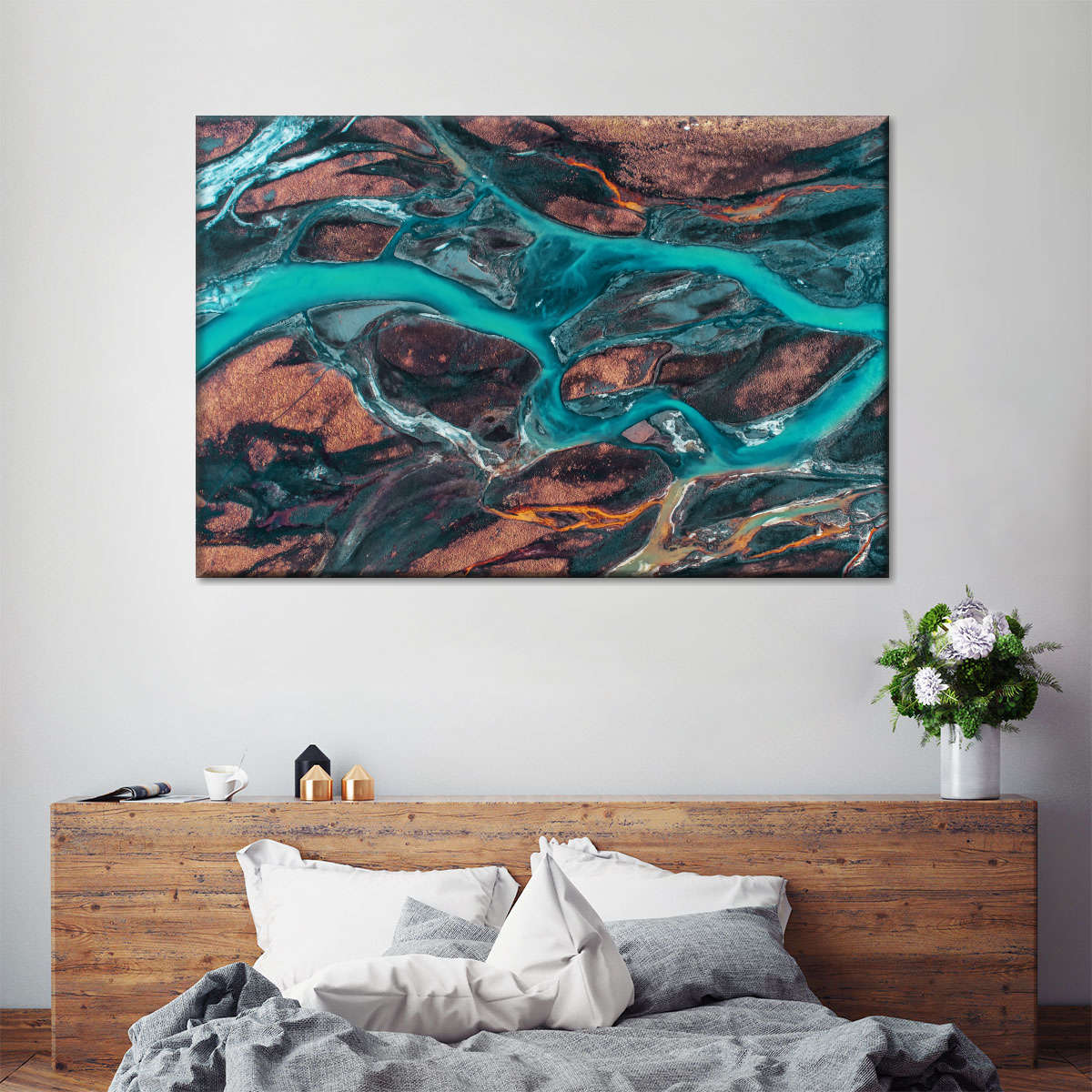 Icelandic River Wall Art will instantly make your d��cor more exciting. Give your living space a stunning finishing touch with a bird's-eye view of beautiful scenery.