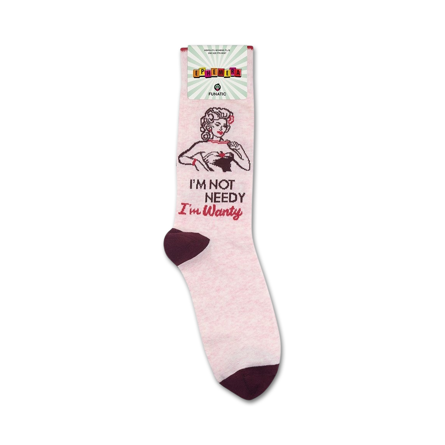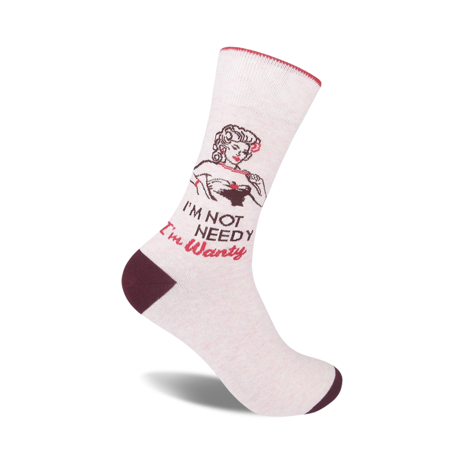 These 'I'm Not Needy I'm Wanty' novelty socks scream fun and cheekiness. Imagine slipping into these comfy crew socks with a smiling bikini-clad woman on them. These socks are not just a foot covering but a statement piece, a conversation starter guaranteed to bring smiles. They say it all: sassy, independent, and not afraid to own it!