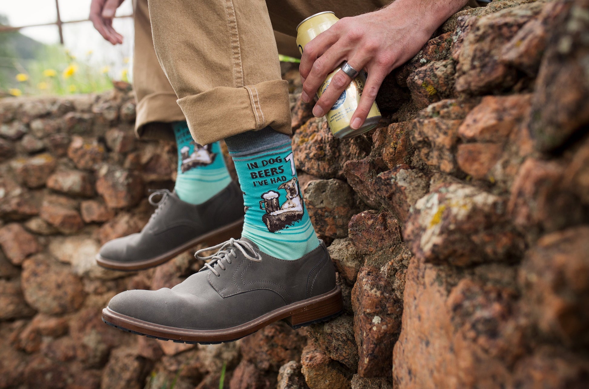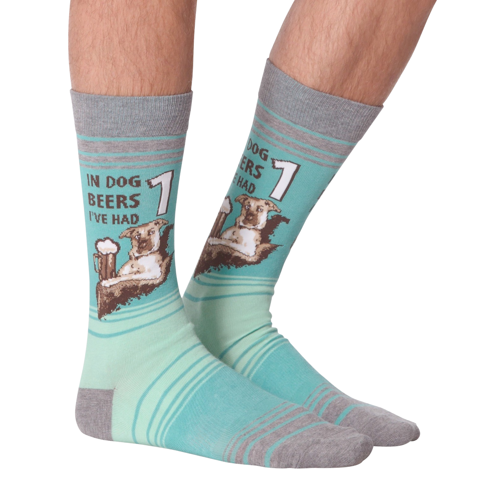 Everyone always confuses dog years with human years. All we know is that less means more when it comes to a man's best friend! These funny socks feature a graphic dog enjoying a nice cold brew. Above him reads "In dog beers I've had 1". These cool socks make a wonderful edition to any beer lover's sock collection.