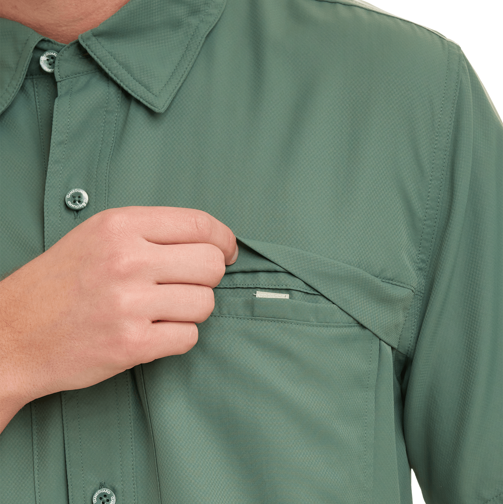 Designed for those who thrive outdoors, the Explorer Shirt is built to perform whether you're tracking game, casting lines, or navigating rugged trails. Its lightweight microfiber construction provides UPF 50+ sun protection, while mesh-lined vents at the chest and back keep you cool in the heat. Quick-drying and wrinkle-resistant, this shirt is as reliable as it is functional. Hidden chest pockets and a lay-flat collar with hidden snaps add practicality without compromising style. Stain resistance ensures the shirt stands up to the demands of the outdoors, while a built-in lens cleaner ensures your gear is always ready. Perfect for hunting, fishing, or exploring, this 100% polyester shirt is your all-in-one solution for adventure.