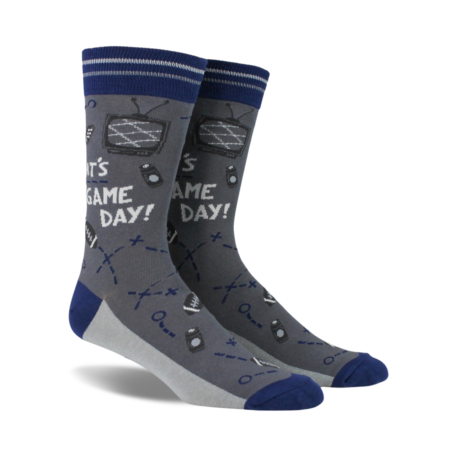 Calling all gridiron gladiators! Gear up for victory in our It's Game Day crew socks. The vibrant green field pattern with red end zones, pigskin prints, and game-day diagrams ignites the football frenzy. Lace up with these socks and feel the roar of the crowd with every step. Your feet will be cheering for touchdowns all season long!