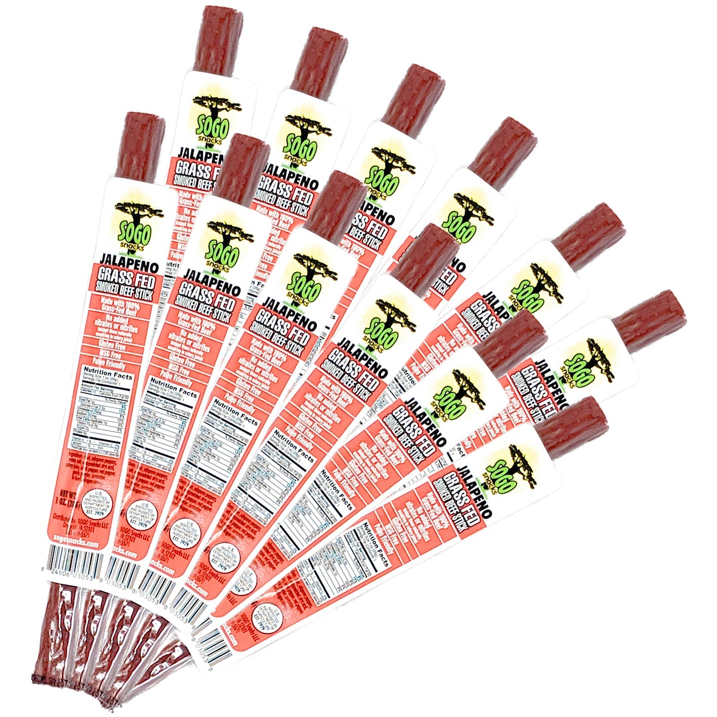 Jalapeño Ingredients: Grass-fed & grass-finished beef, jalapeño peppers, water, sea salt, citric acid, celery juice, black pepper, red pepper, garlic powder, coriander, in beef collagen casings.