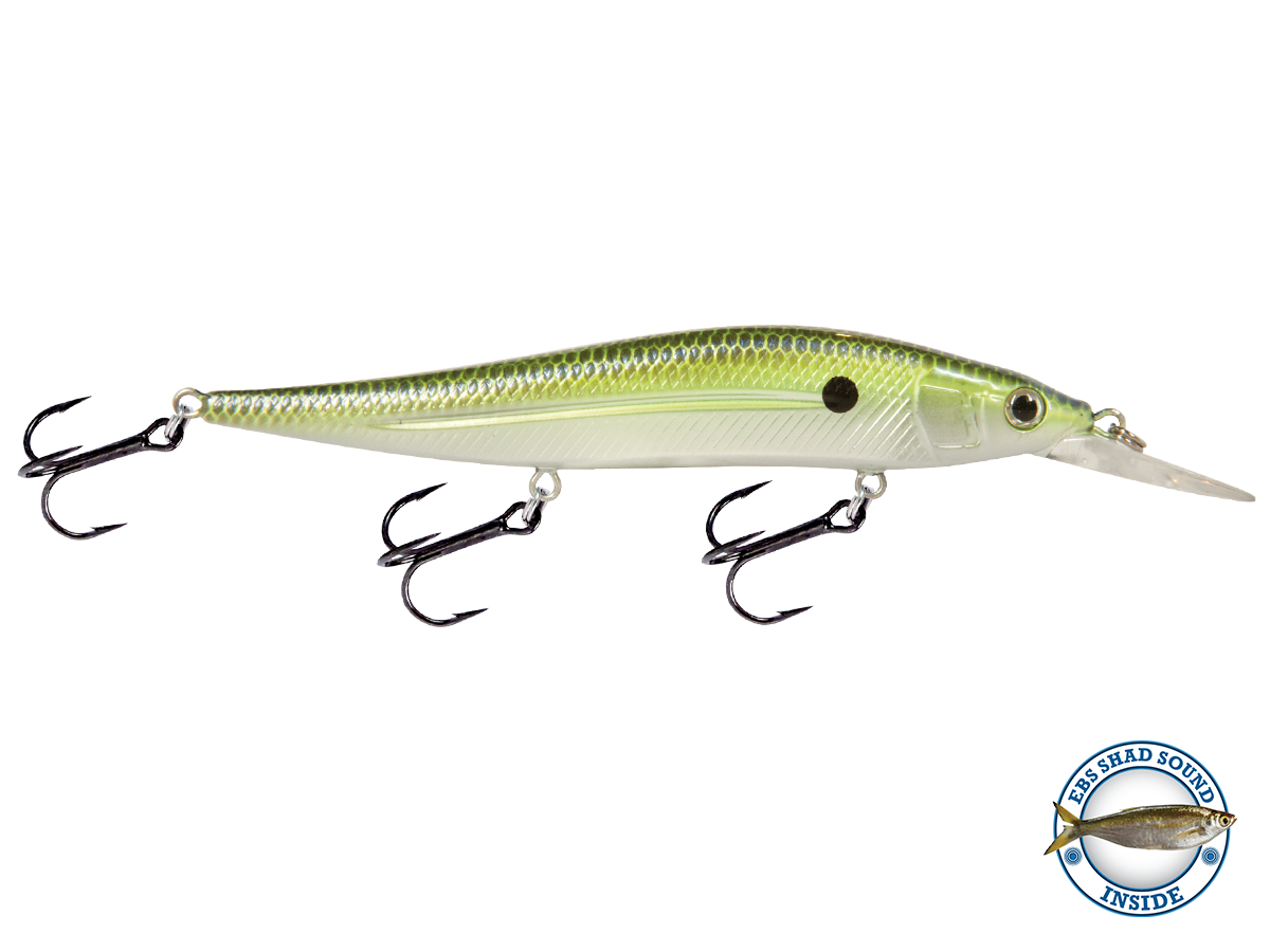 The slow-sinking JERKMASTER 121D (the Cherry Picker), designed by Team Livingston Pro Hank Cherry, is the next generation of jerkbaits. It features a unique body and lip design that produces a killer darting action down to 10 feet and an internal weight transfer system that enables you to cast it like a laser. Combine the Cherry Picker's killer action with the powerful attraction of EBS TechnologyTM, and you'll have a jerkbait capable of drawing fish from double the distance of a traditional jerkbait.