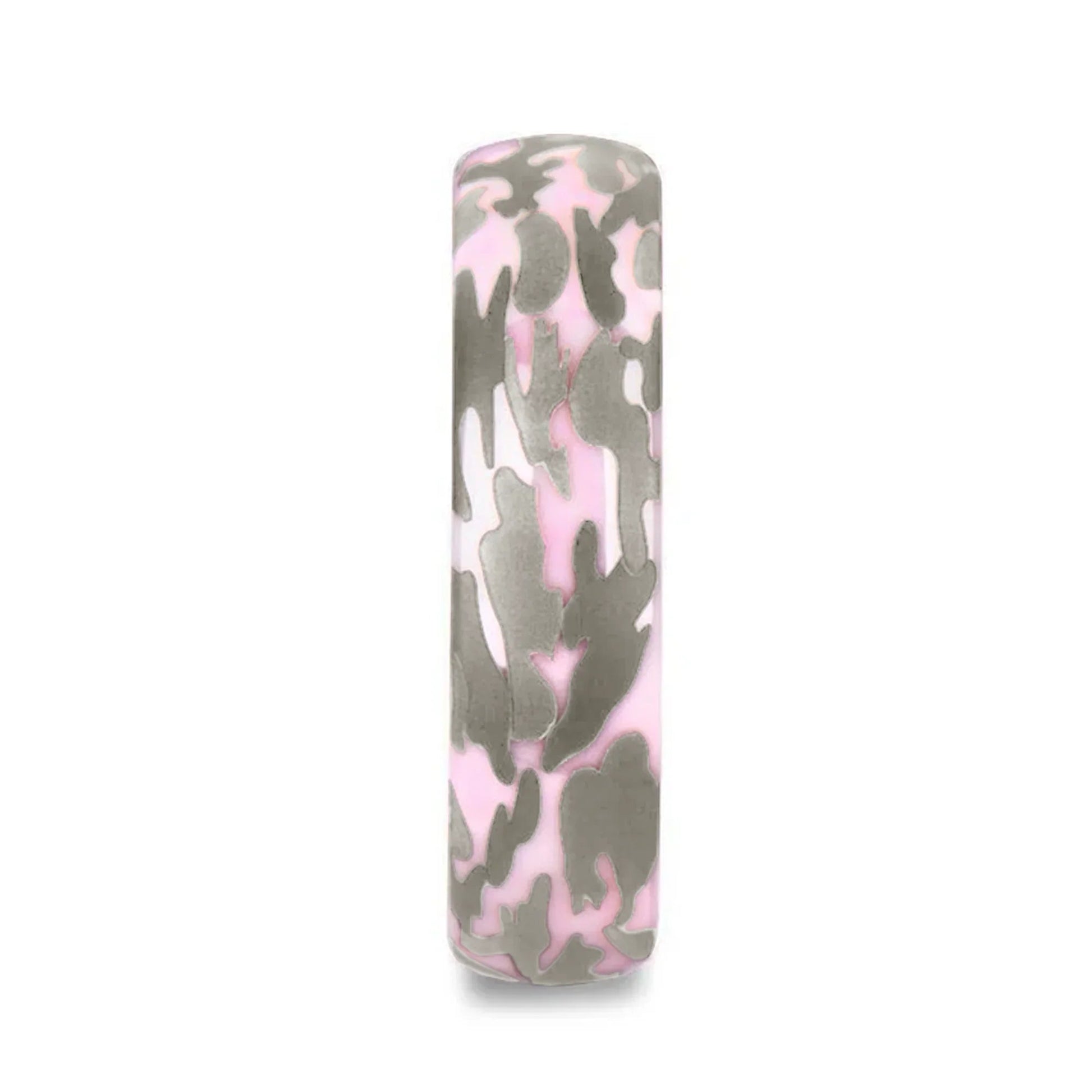 JOAN Domed Polished Pink Ceramic Ring with Laser Engraved Camo Pattern - 6mm