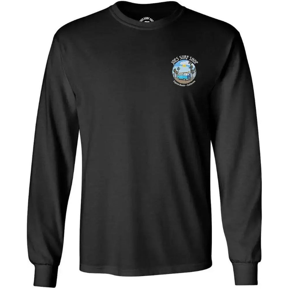 Joe's Surf Shop Men's Surf Bus Long Sleeve Tee is a local favorite! Driving along Pacific Coast Highway, you're sure to find a vintage bus chugging along aside you. With your new long sleeve surf shirt on, you will fit right in! With our many sizes this tee is perfect for everyone! Grab your long sleeve beach shirt today!