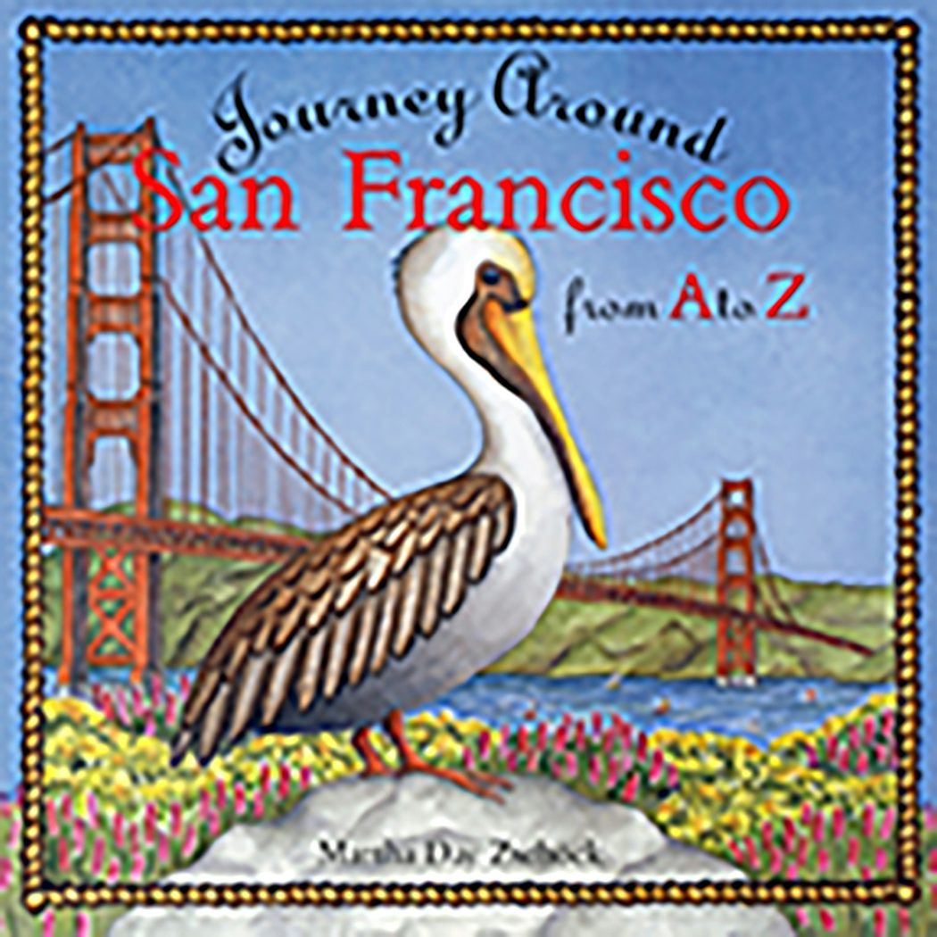 A friendly pelican guides explorers of all ages on a beautiful tour of San Francisco, pointing out intriguing sights and history along the way.