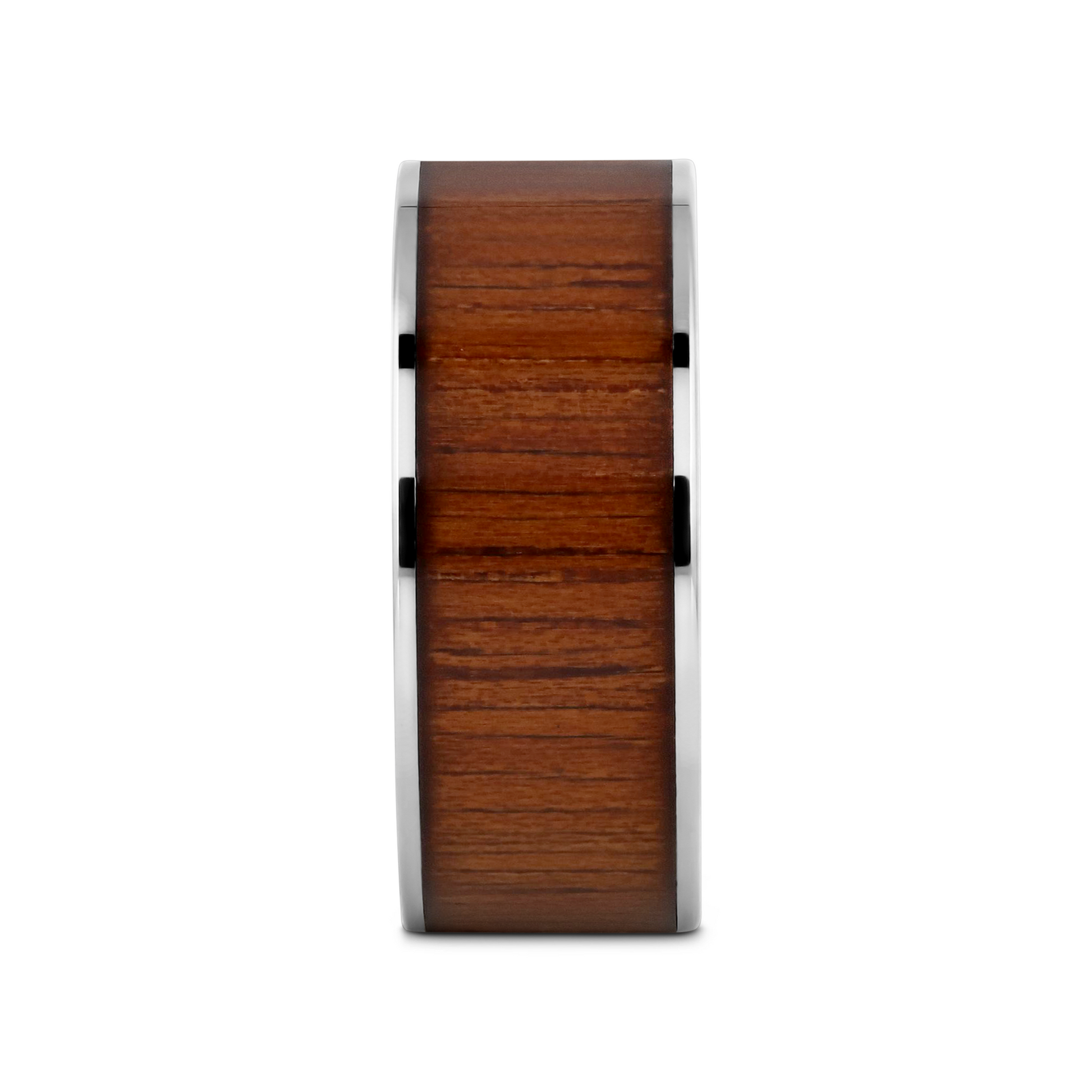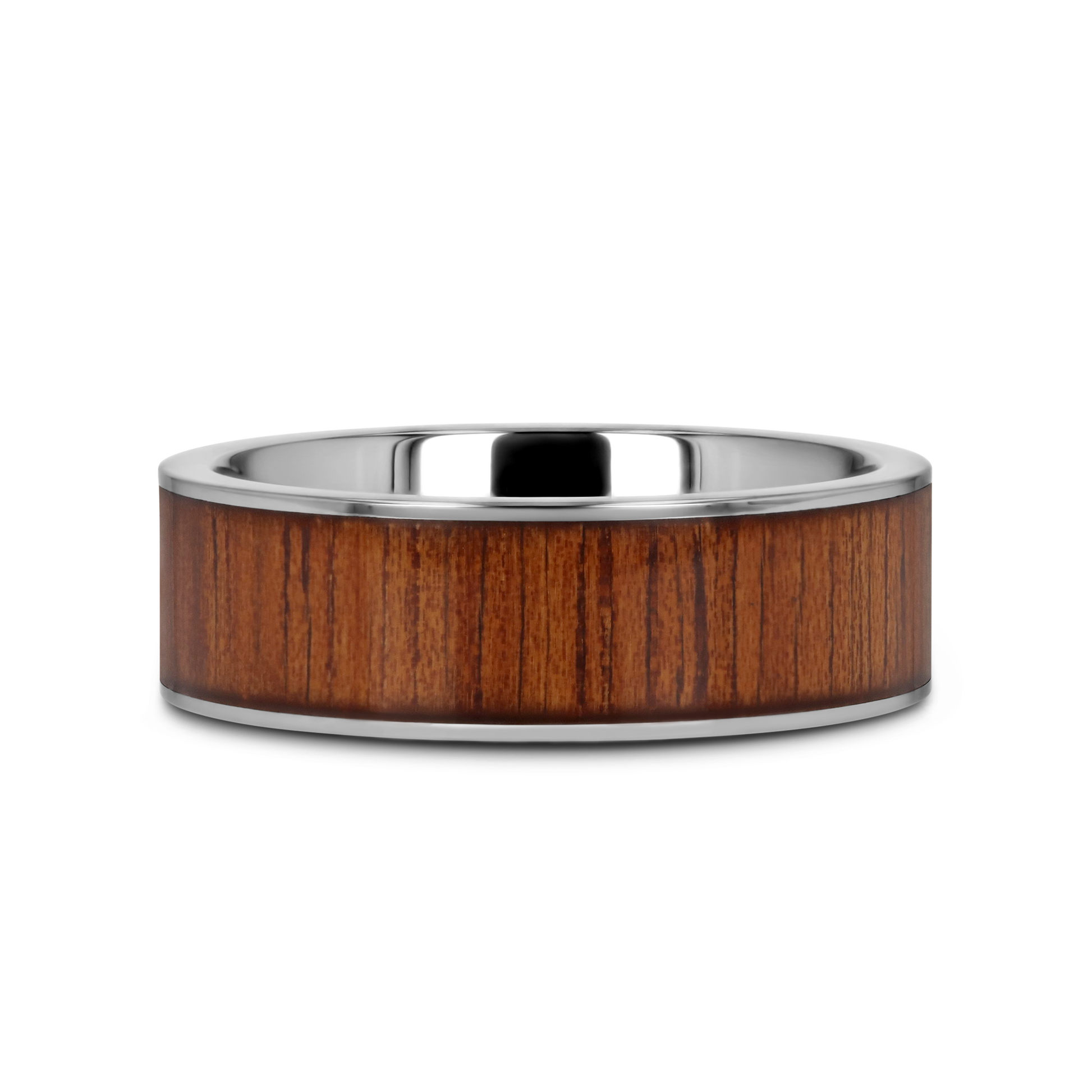 KALANI Flat Tungsten Carbide Wedding Band with Rare Koa Wood Inlay and Polished Edges - 6mm - 10mm