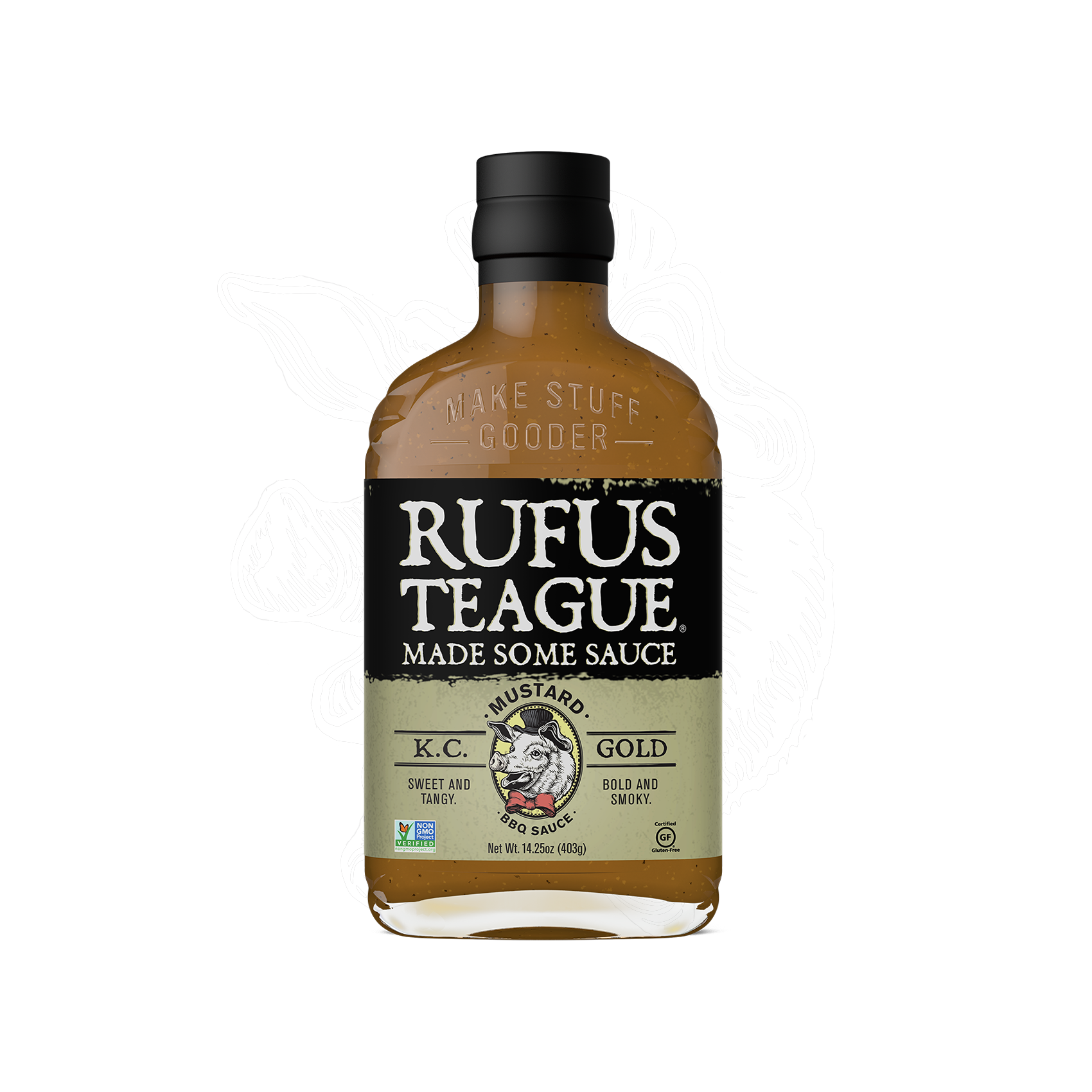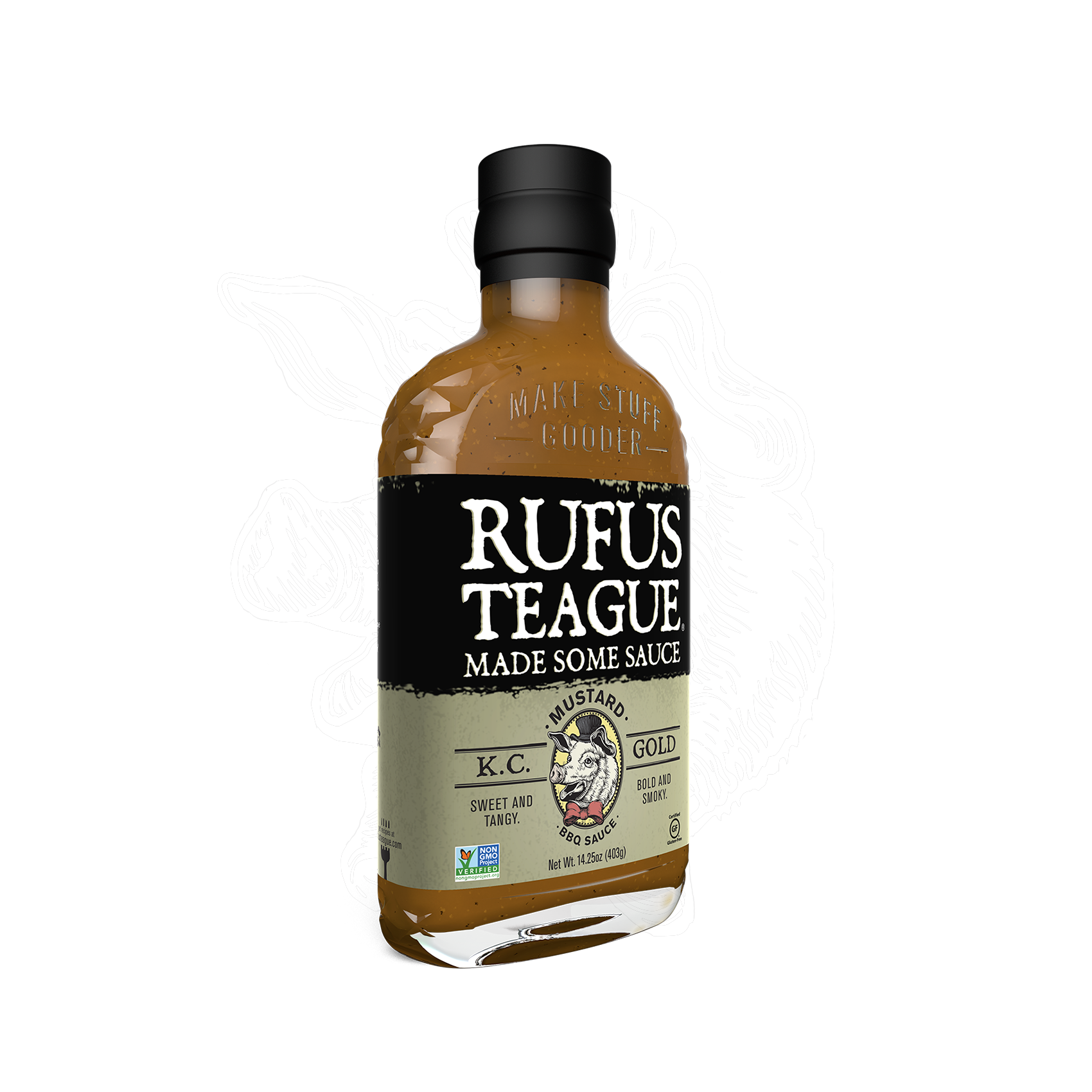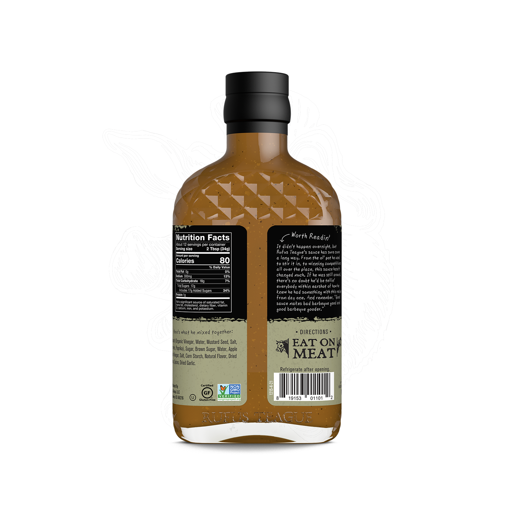 This is the real deal, not some cheap knockoff. As with all Rufus Teague sauces, we cook them longer, so they are less watery, and the flavor is more intense. Made with the finest natural ingredients, our sauce has a solid mustard base and sweetened with real sugar. So, make your food happy and remember, “Good sauce makes bad barbecue good and good barbecue gooder.”
