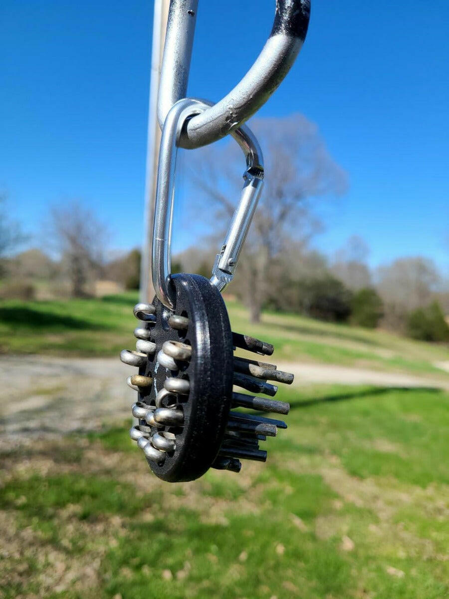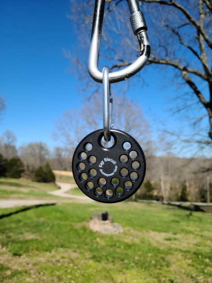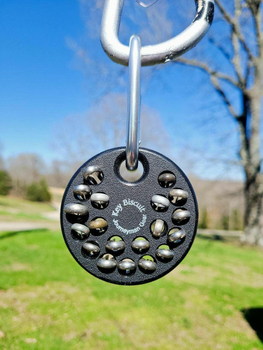 Next up is the KeyBiscuit. Its the only cotter key keeper and is extremely lightweight. Very convenient to keep clipped to tool bags and in the bucket using the light duty carabiner included with each one.