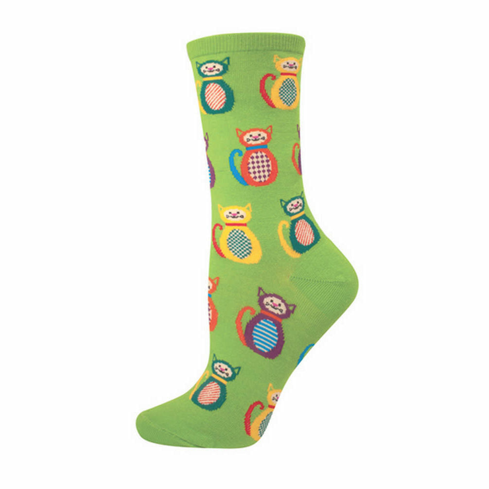 Slip something extra cute onto your feet that will have you feline fine with these adorable patchwork kitten socks! Each pair of crew socks comes in a vibrant lime green and features a colorful display of kitten patches all over. Mr. Mittens will approve of these really fun socks!