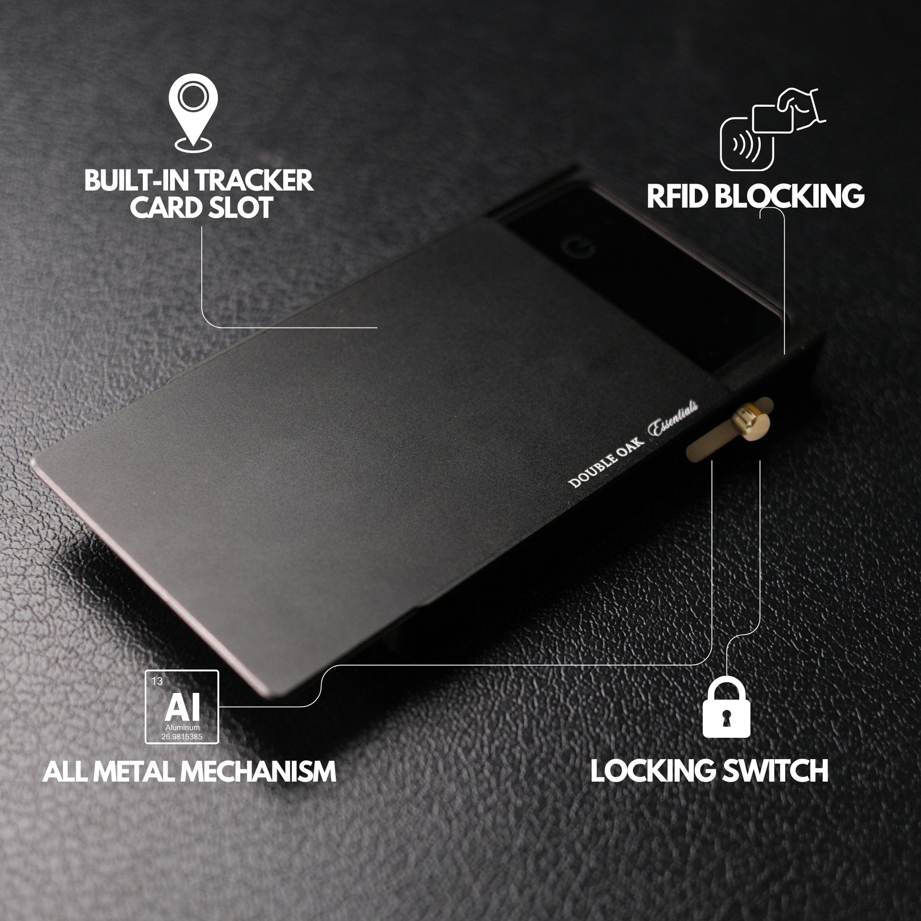 The wallet seamlessly combines form and function, comfortably holding up to 5 cards in the chamber with a dedicated wallet tracker card slot.