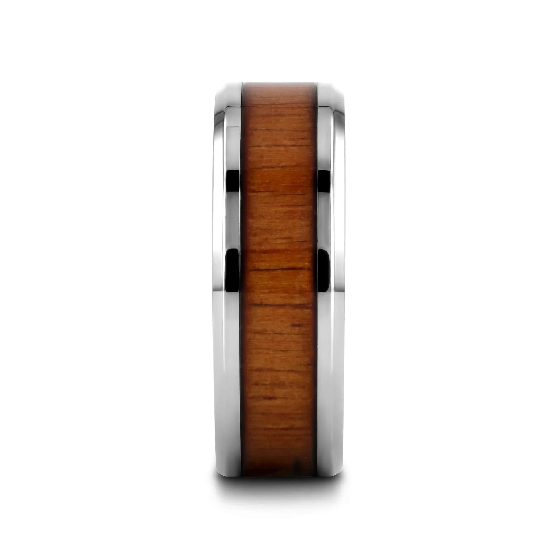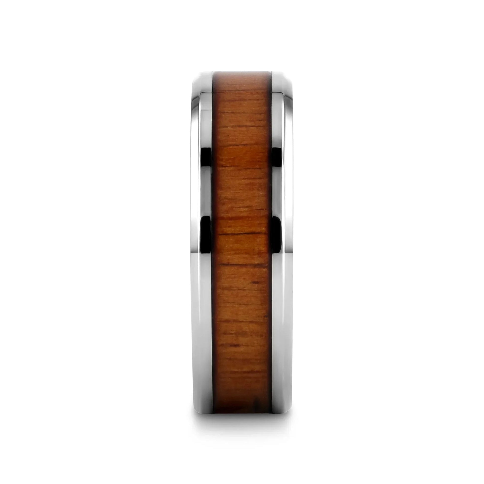 KOAN Titanium Polished Finish Koa Wood Inlaid Men’s Wedding Ring with Beveled Edges - 8mm
