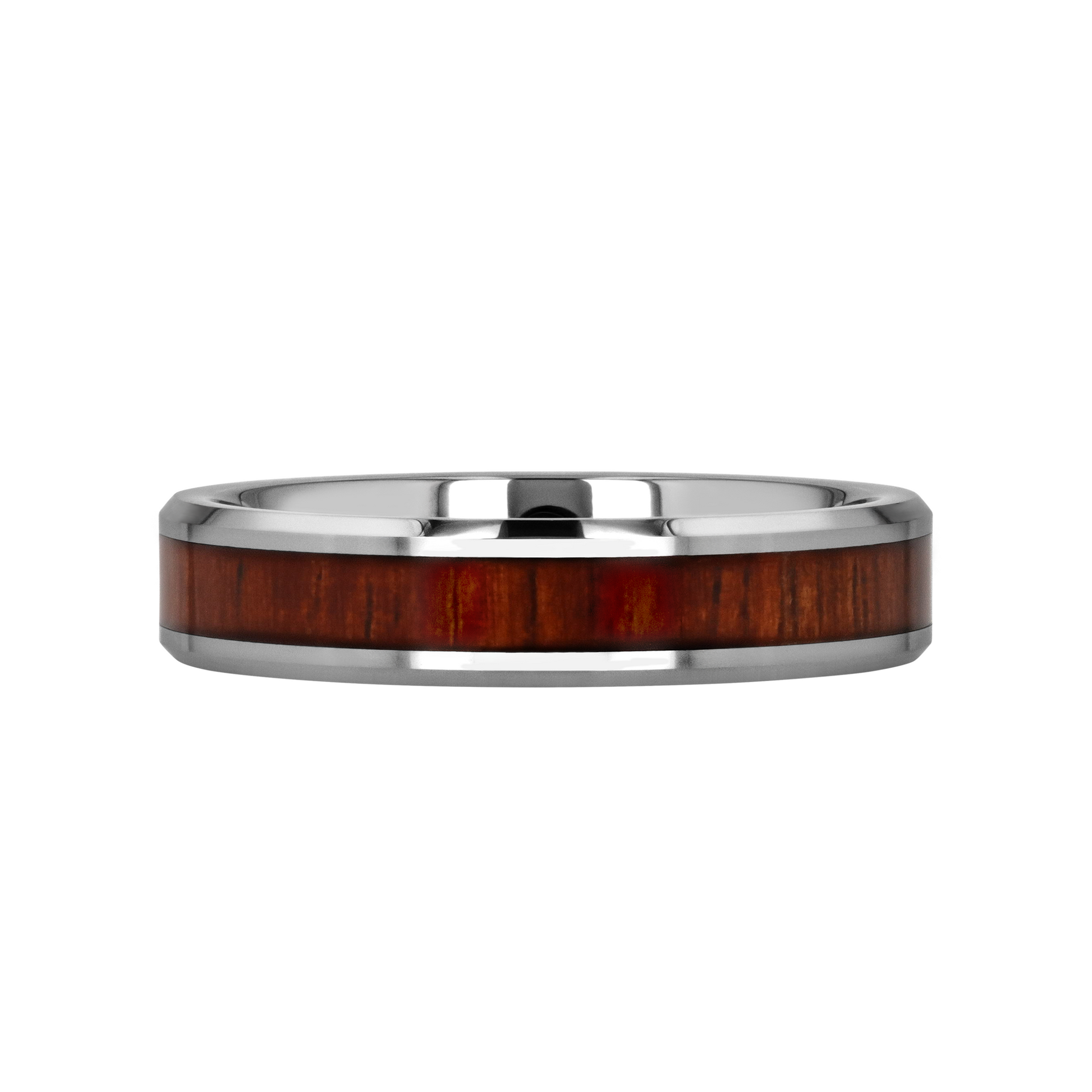 KONA Koa Wood Inlaid Tungsten Carbide Ring with Bevels - 4mm