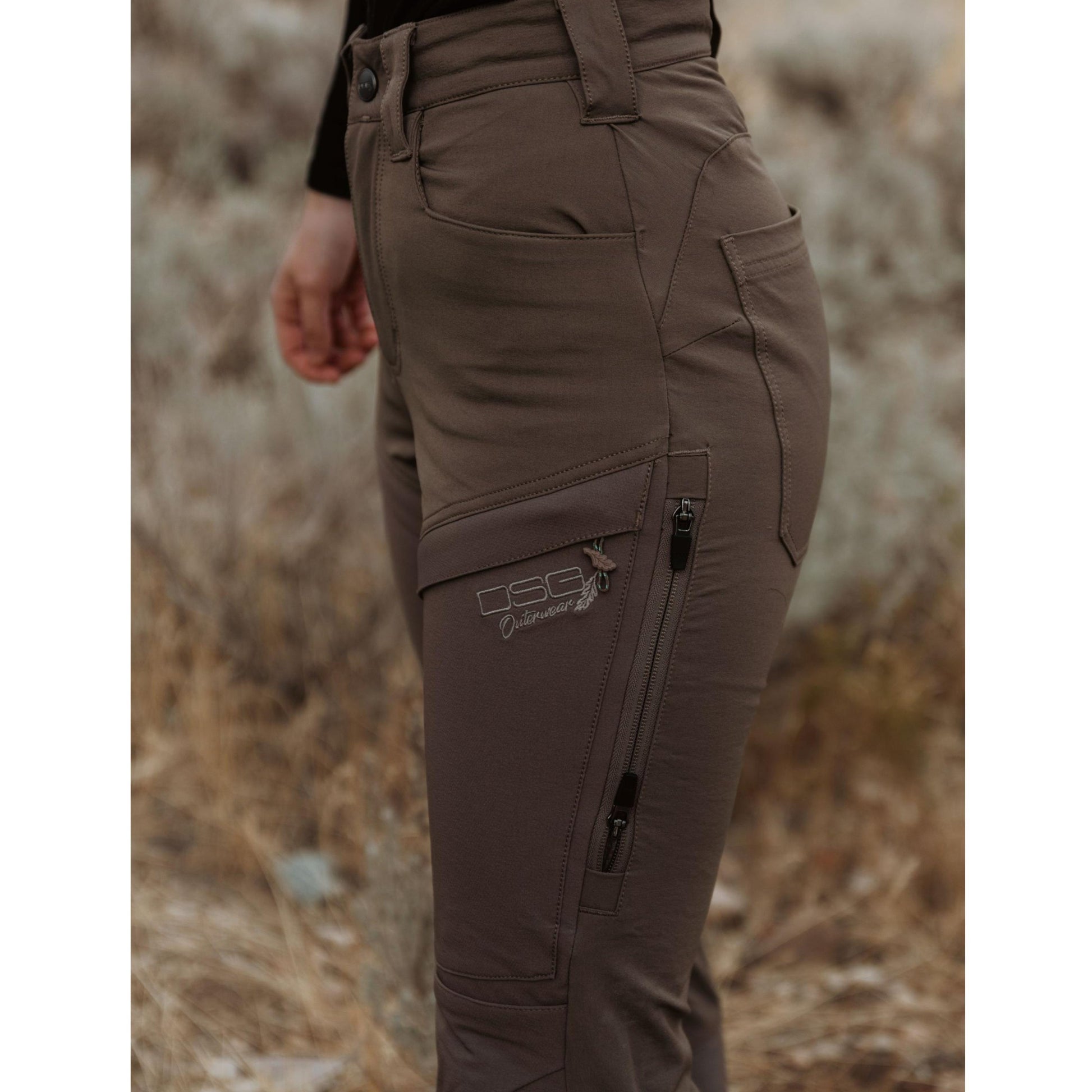The Kortnis have a snug waistline. We recommend going up a size! These pants are some of the most versatile pants we’ve created because of the features and the size variety they offer. The Kortni pants are made of a Nylon/Spandex 4 way stretch fabric, making them durable and comfortable at the same time. While the abrasion paneling in the front and back make the pant thicker, there are 2-way side zippers on the thighs for ventilation. The waist contains an extra wide belt loop to accommodate a snugger fit, and the crotch is gusseted to allow for better mobility. The rear darts help with improved fit, and the knee darts offer good flexibility. Six pockets allow for plenty of storage, with 2 normal front pockets, 2 back pockets and 2 zippered pockets on the thighs. At the base of the pants, there are side zippers to accommodate a variety of hunting boots that can be worn. To top off all these amazing features, the Kortni pant comes in petite, regular, and tall lengths.