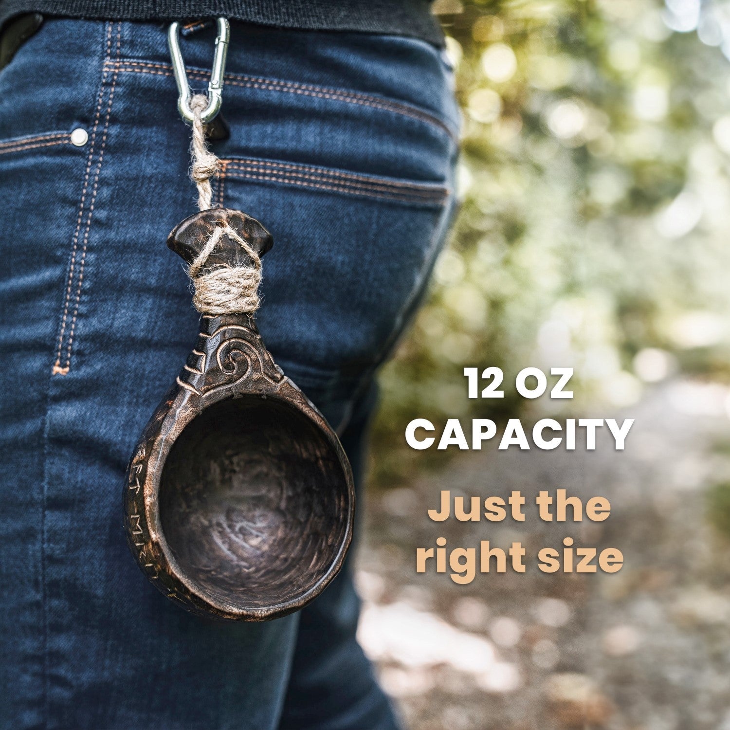 🏕 TRAVEL SIZE - Each kuksa is completely unique in size since it is hand-carved. Typically, they range from 10-12 oz in fluid capacity, making this kuksa more compact and easy for storage and travel.