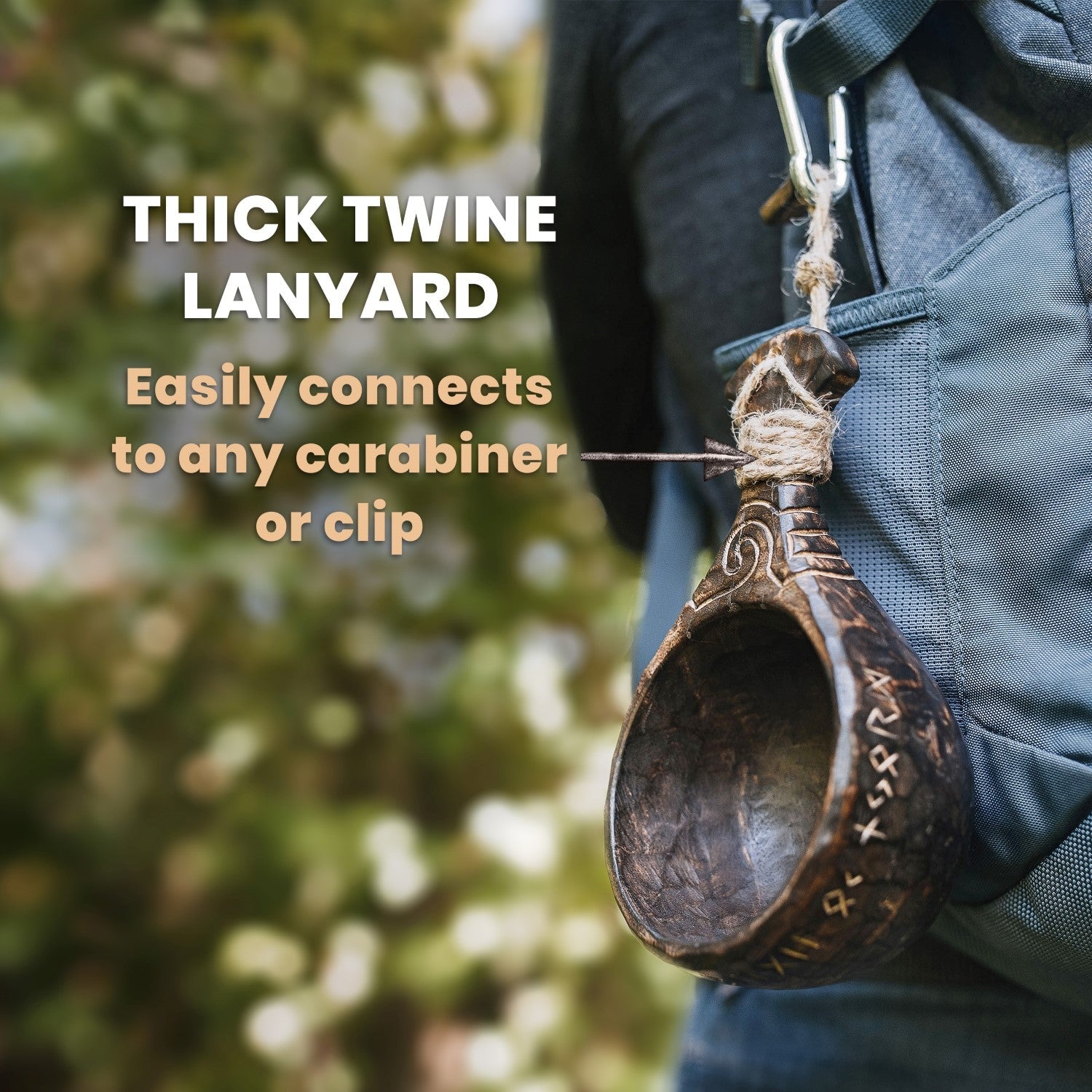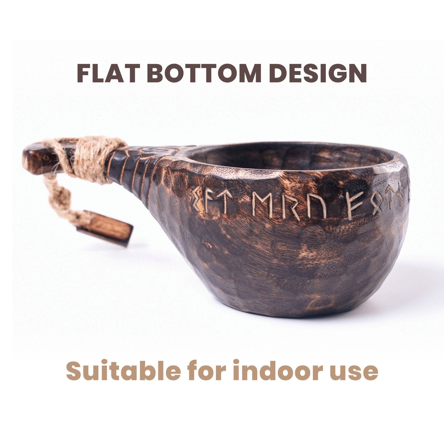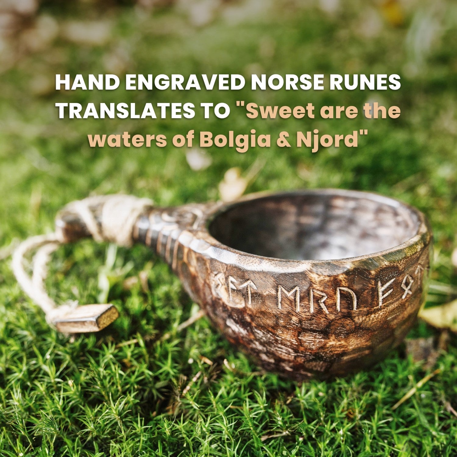 🏕 BUSHCRAFT WITH A VIKING TWIST - Our kuksas are hand-engraved with a series of Norse runes which reads "Sweet are the waters of Balgia & Njord".