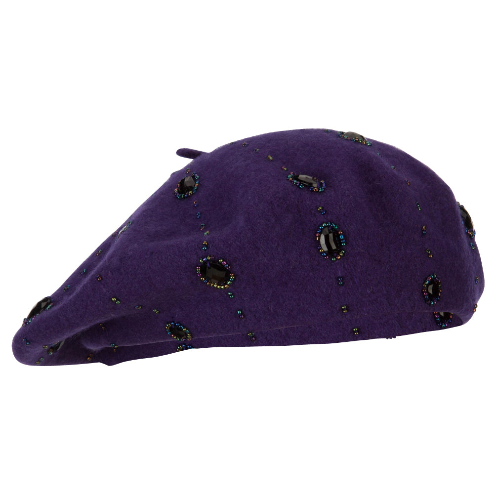 Ladies Starburst Beaded Trim Wool Beret