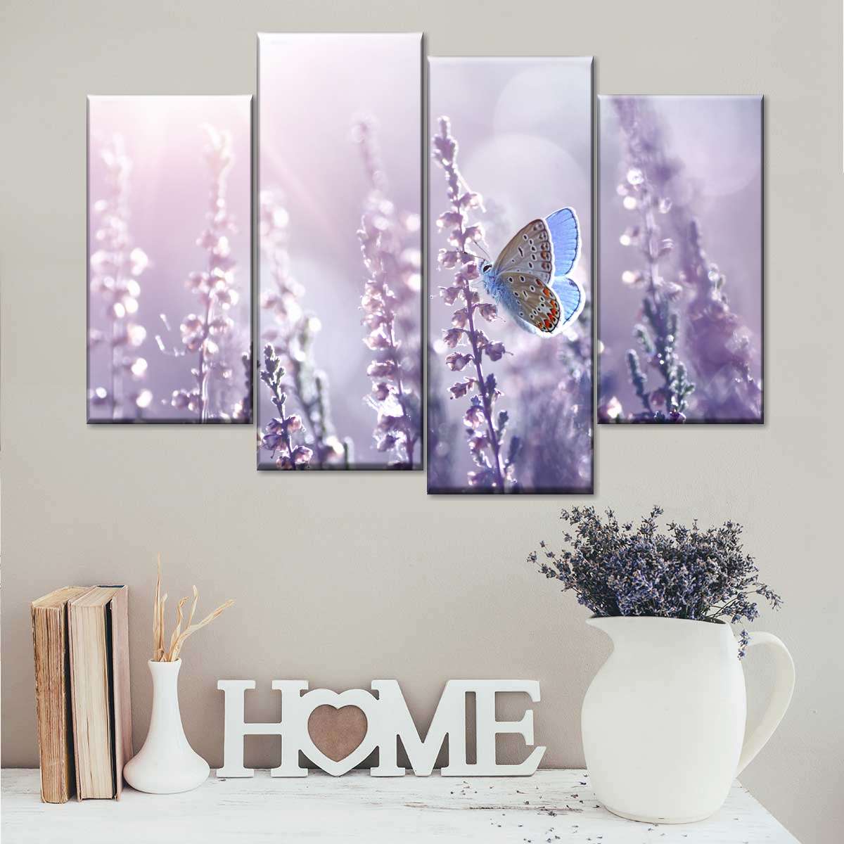 Lavender Flower Wall Art is your way to bring nature's beauty into your home. Butterflies add color, charm, and cheerfulness. As butterflies symbolize hope, this canvas print will lift your spirit.