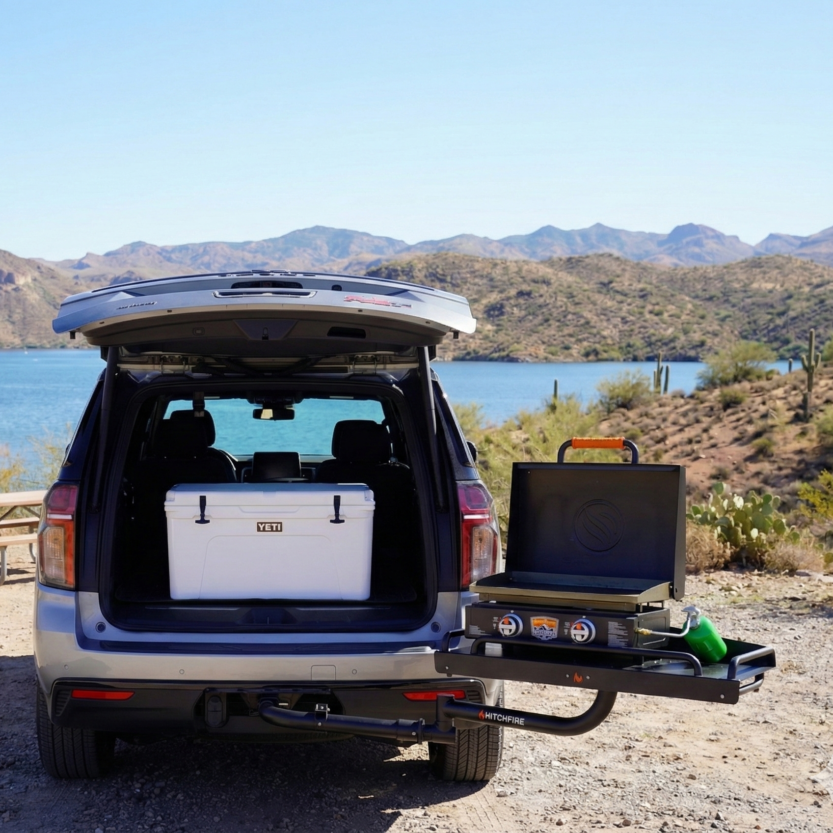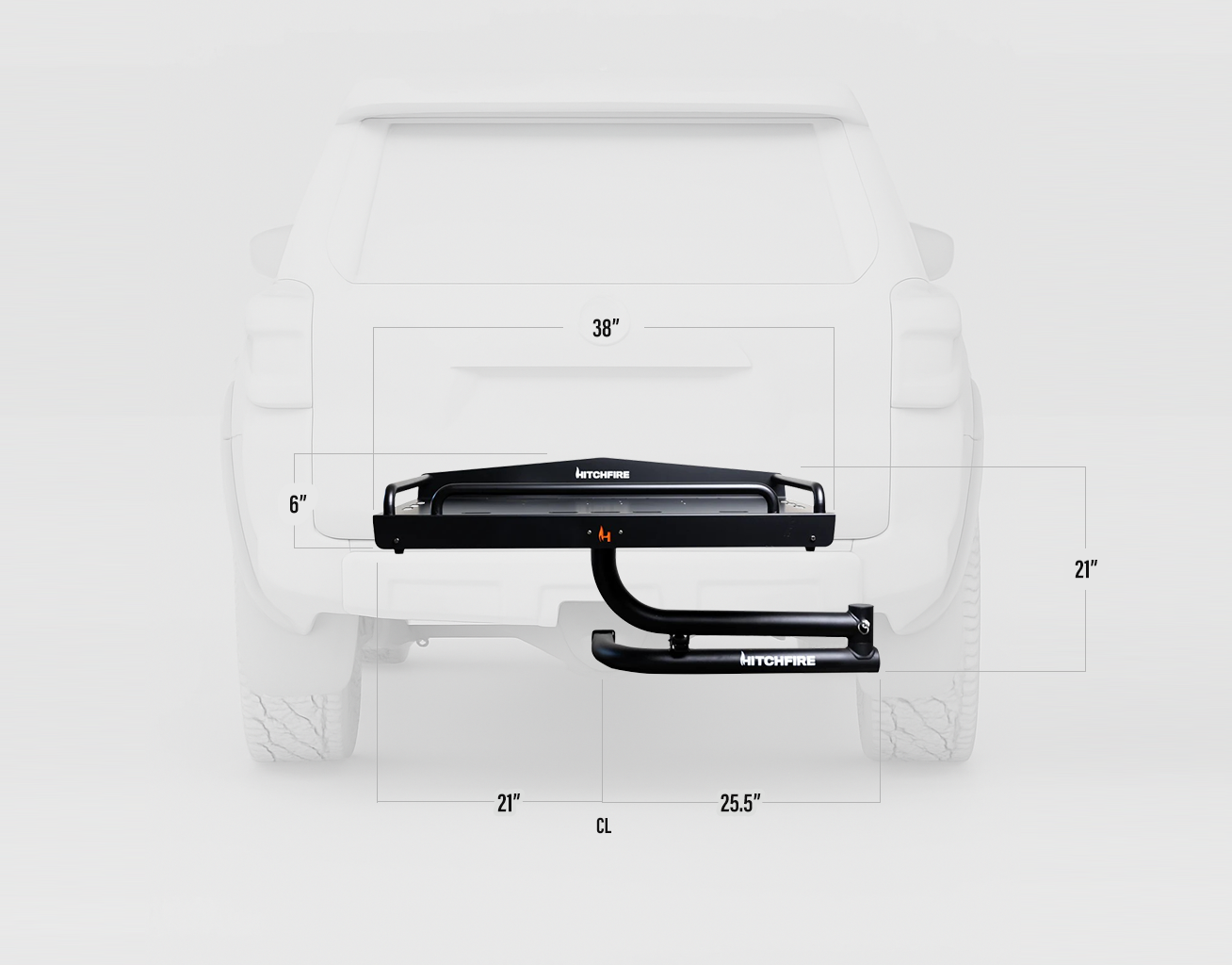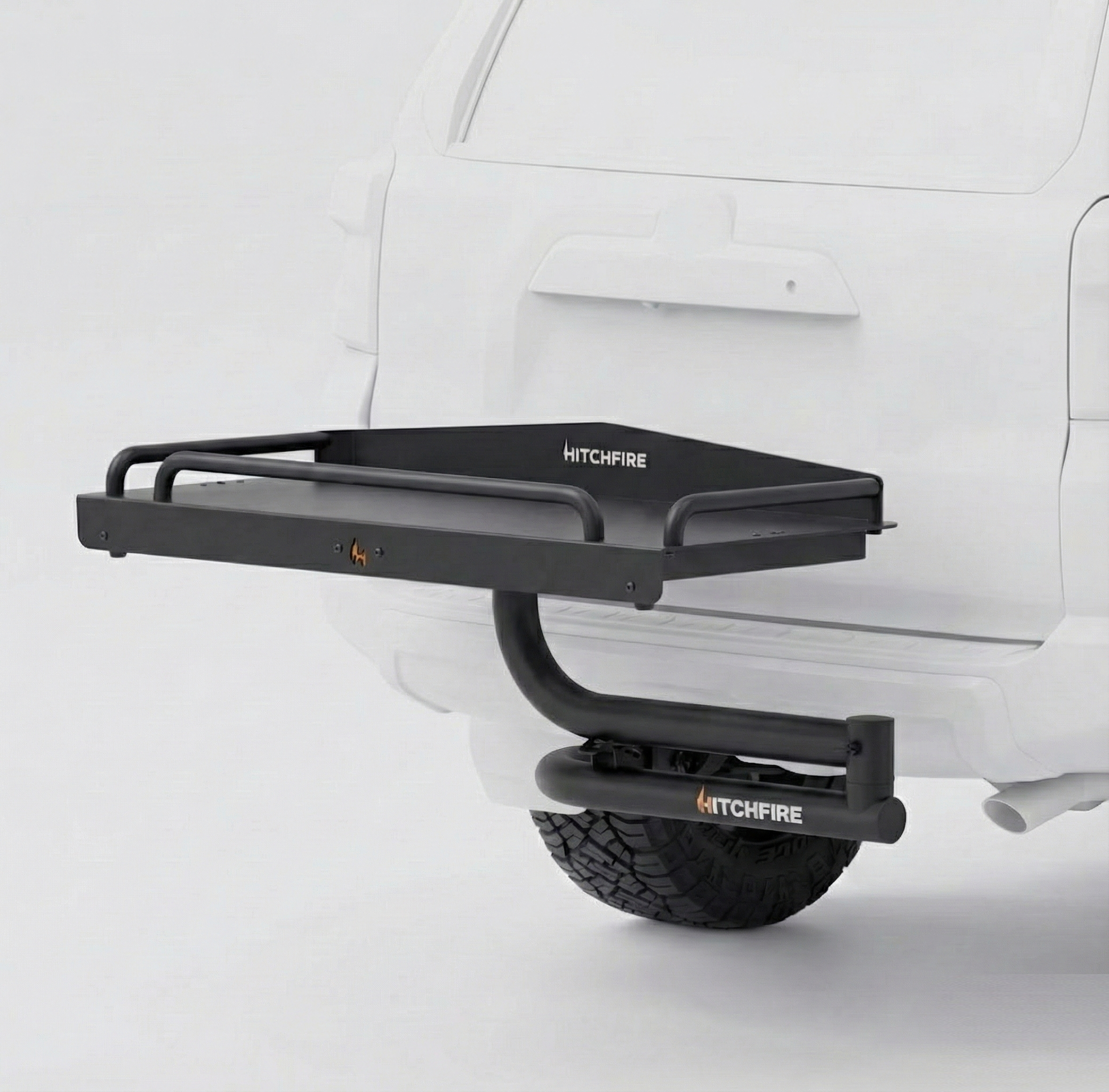 Built for the road warriors, camp chefs, and gear junkies who never pack light, the HitchFire LedgeXL Platform transforms your hitch into a rugged utility zone. Whether you're hauling camp gear, firewood, or setting up the ultimate trailhead kitchen, the LedgeXL is your go-to platform for doing more with your rig.