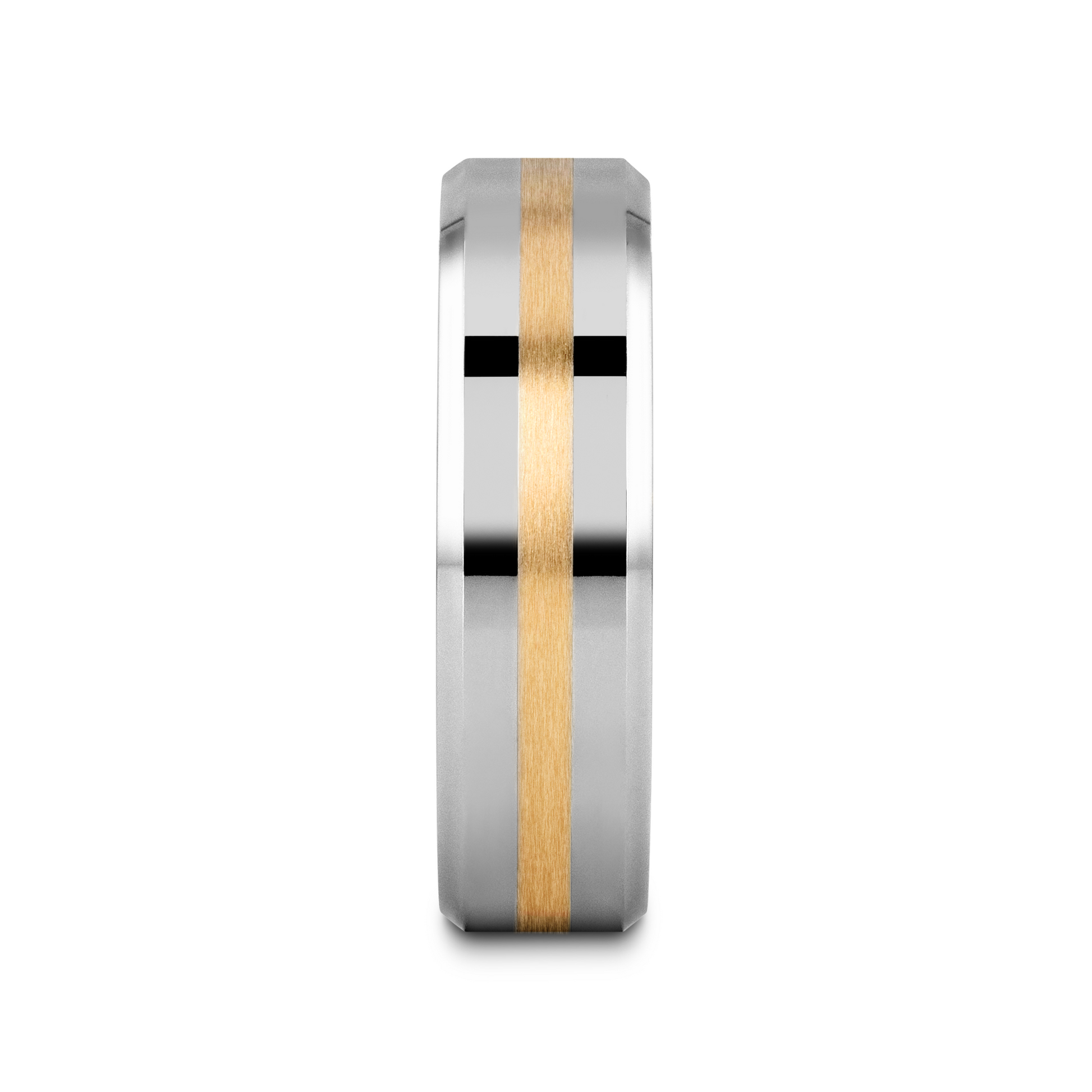 LEGIONAIRE Gold Inlaid Beveled Tungsten Ring - 6mm & 8mm