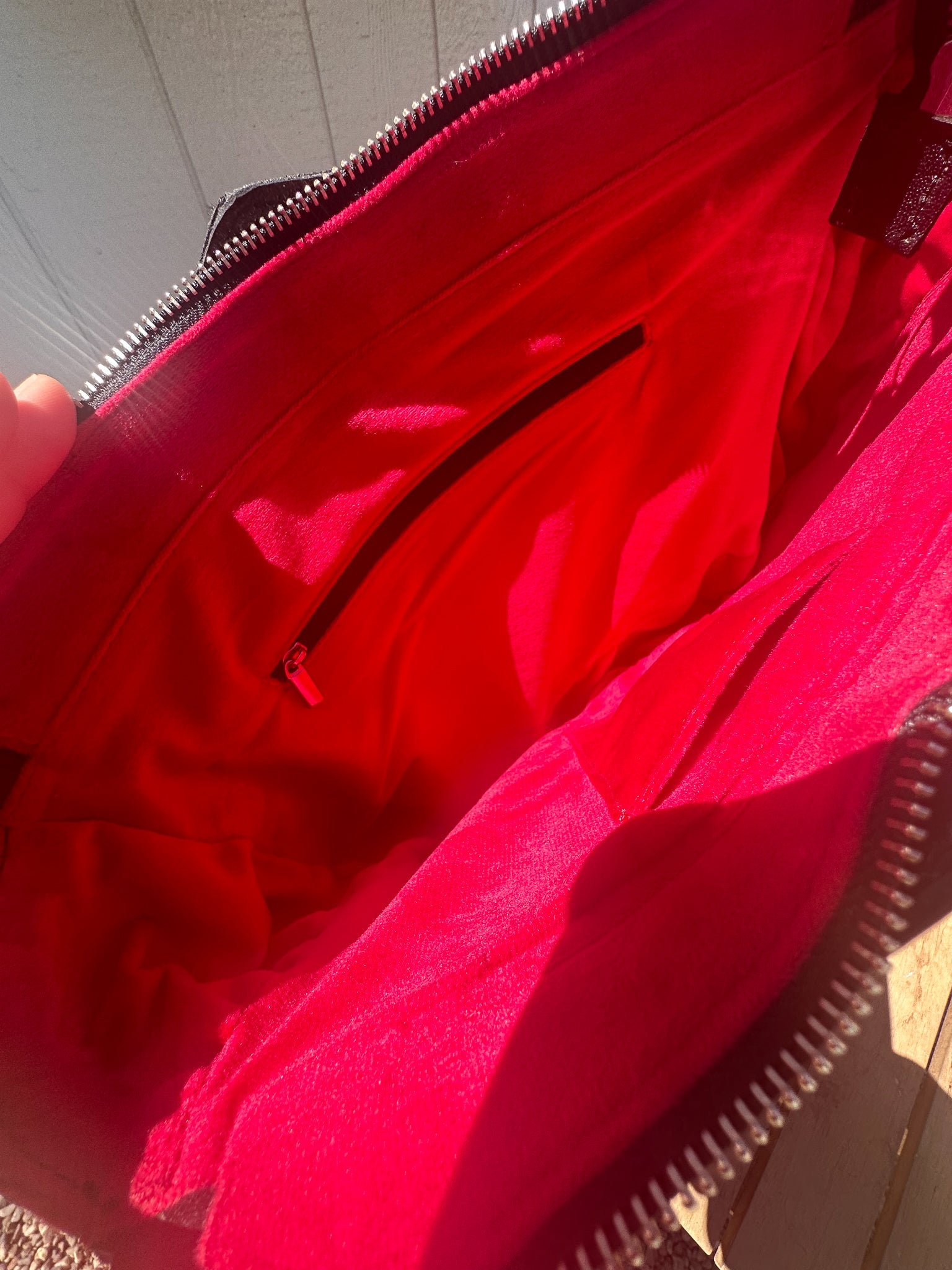 Sugar and Spice, and everything Nice! This is your next bag for the Rodeo, Event, Girl... Every. Single. Day! She features a luxurious red velvet interior, 1 zipper pocket, and 1 cubby pocket.