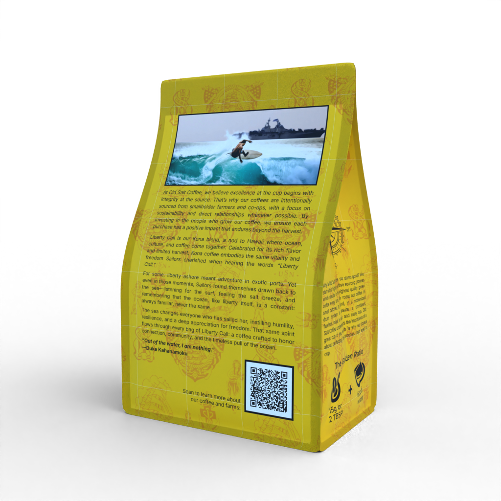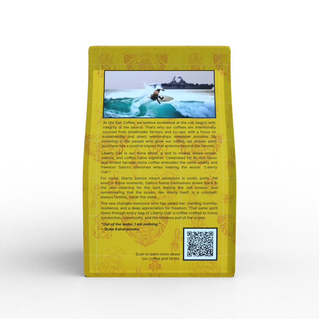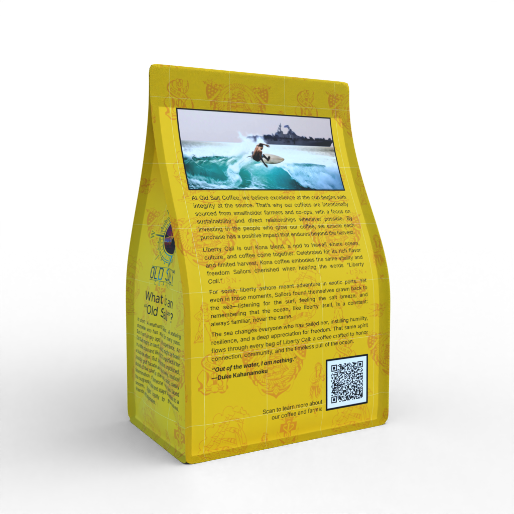 The unmistakable taste of Kona combines with the full bodied underpinnings of classic Old Salt Coffee to make the perfect roast for those who are drawn to the sea. With just enough caffeine to start your day right, Liberty Call is also the perfect coffee while watching the sun set over the shoreline as twilight gives way into night.