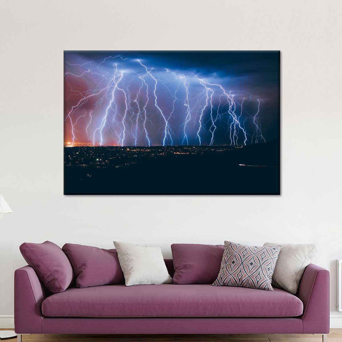 Lightning Strikes Multi Panel Canvas Wall Art will refresh your mind and soul whenever you stop and stare at it. This high-quality art print will complement any room in your home and soothe your senses with nature's beauty.