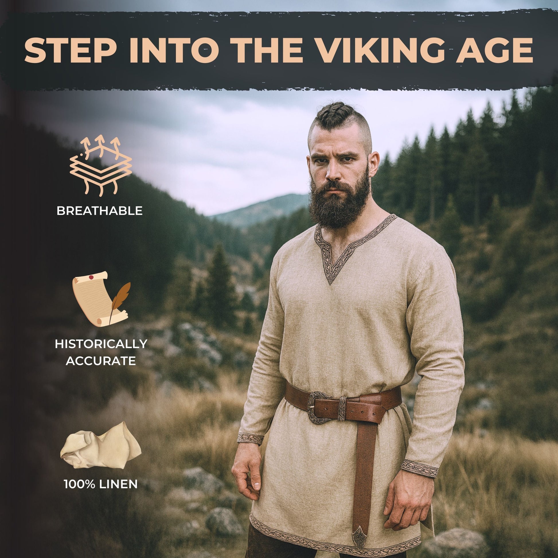 PURE QUALITY LINEN - Our Norse tunics are made from naturally dyed, hand-woven linen fabric The long-sleeve version is 350 GSM, meaning it has some thickness and warmth to it, making it suitable for moderate to cooler temperatures. Our short-sleeve tunic is 180 GSM, making it more appropriate for warmer climates. BELT NOT INCLUDED.
