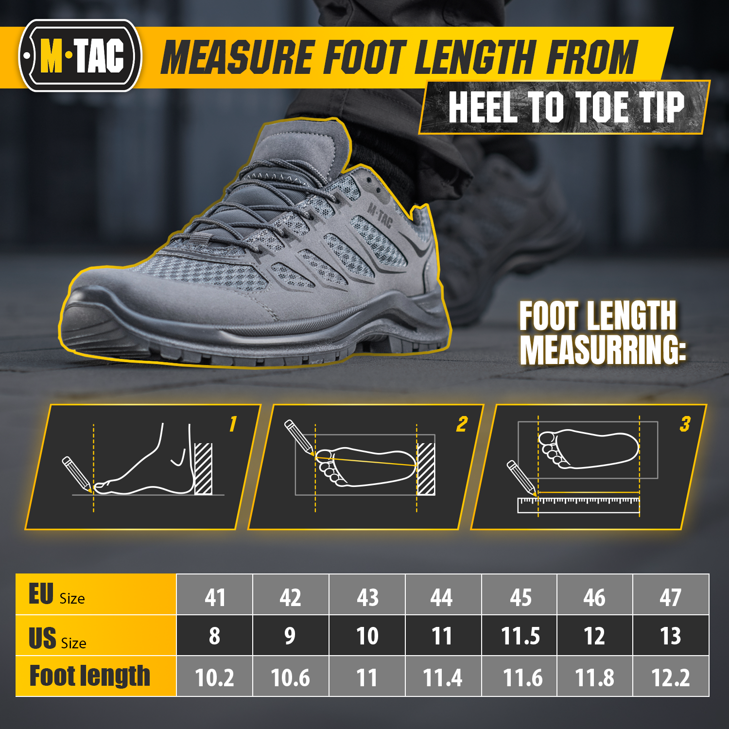 The M-Tac have taken a revolutionary step in the production of shoes and released their new ‘Iva’ model tactical sneakers. They are designed for everyday summer use, and are stylish and lightweight. The composite upper is made of breathable mesh reinforced with synthetic nubuck. This combination provides excellent ventilation and an optimal temperature inside the sneakers. One of the advantages of this model is the dense weave of the outer mesh, which does not allow sand and dust to pass through, while providing excellent breathability. There is an additional pad on top of the tongue to protect against dirt ingress. The reinforced toe and heel prevent premature wear of the shoes and protect your feet from impact. There is also a bootstrap to make it easier to put on the sneakers. Inside, the ventilated mesh guarantees excellent thermoregulation and removes excess heat. The insole is made of high-quality polyester and gives softness to the entire inner structure of the shoe. The two-component sole is attached to the base of the shoe by the most modern and reliable method of direct injection. The upper layer of the sole is made of thermoplastic polyurethane (TPU), which is sufficiently flexible and light, and characterized by high shock absorption. The bottom layer is made of rubber, which guarantees resistance to abrasion and a long service life. This highly protective layer provides maximum grip when walking or running. The Iva tactical sneakers are light, protective and easy to clean. They are the best choice for those who lead an active lifestyle.