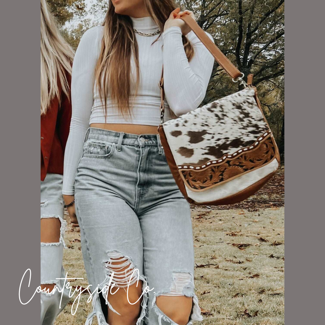The latest trend in luxury handbags is Magdalene Cowhide Concealed Carry Purse, featuring exquisite hand-tooled leather and cowhide with a built-in concealed carry option. Elevate your fashion game with this high-end bag, complete with an adjustable leather shoulder strap for a personalized fit. Keep your belongings secure with two hidden exterior zipper pockets, an interior zipper pocket, and a zipper closure. Finished off with the classic Countryside Co. lining.