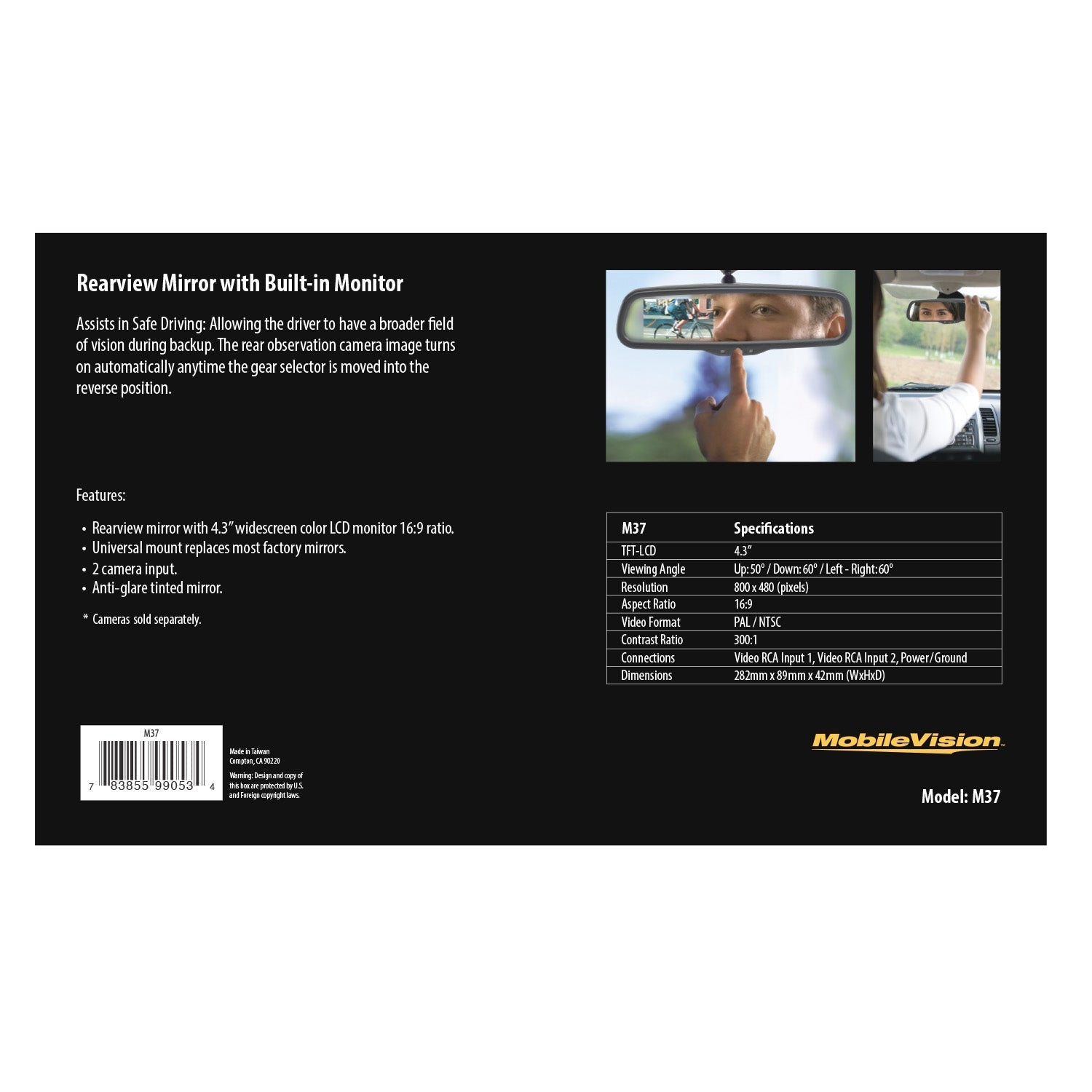 Magnadyne M37 | Rear View Mirror with Built-in LCD Camera Monitor