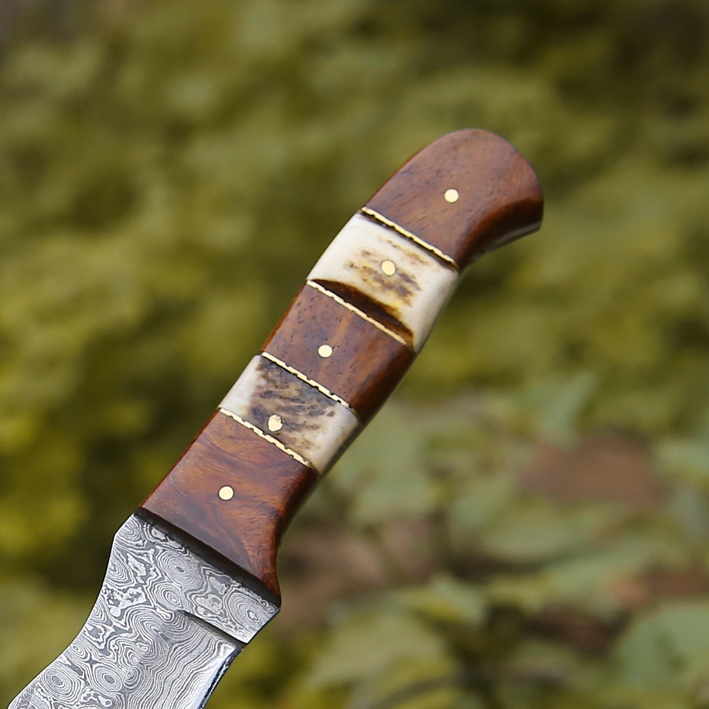 Mangler Damascus Hunting Knife with Rose Wood & Stag Horn Handle