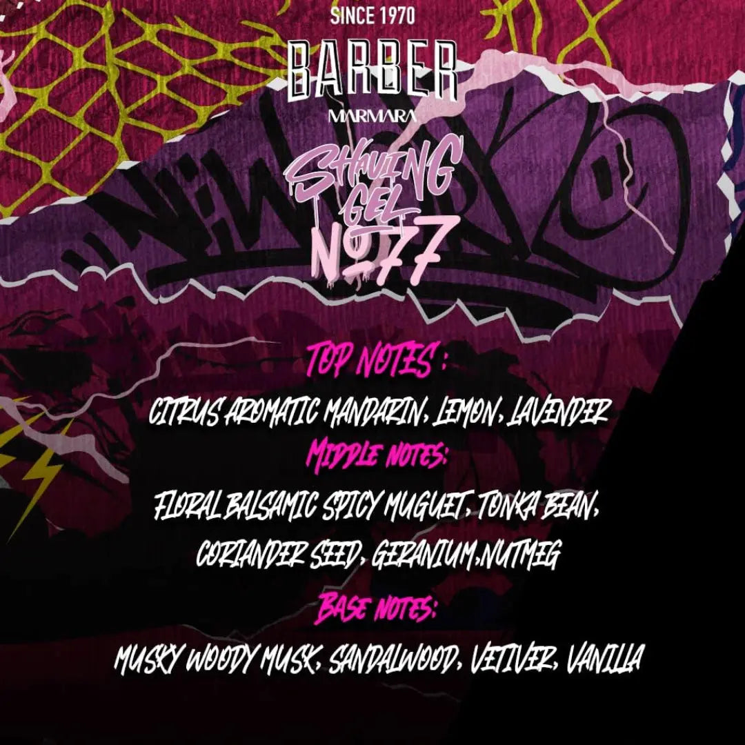 The Barber Marmara Promise: As with all Barber Marmara products, Shaving Gel No. 77 is free from harmful chemicals and artificial additives. It's an emblem of quality, reflecting the art and tradition of classic grooming.