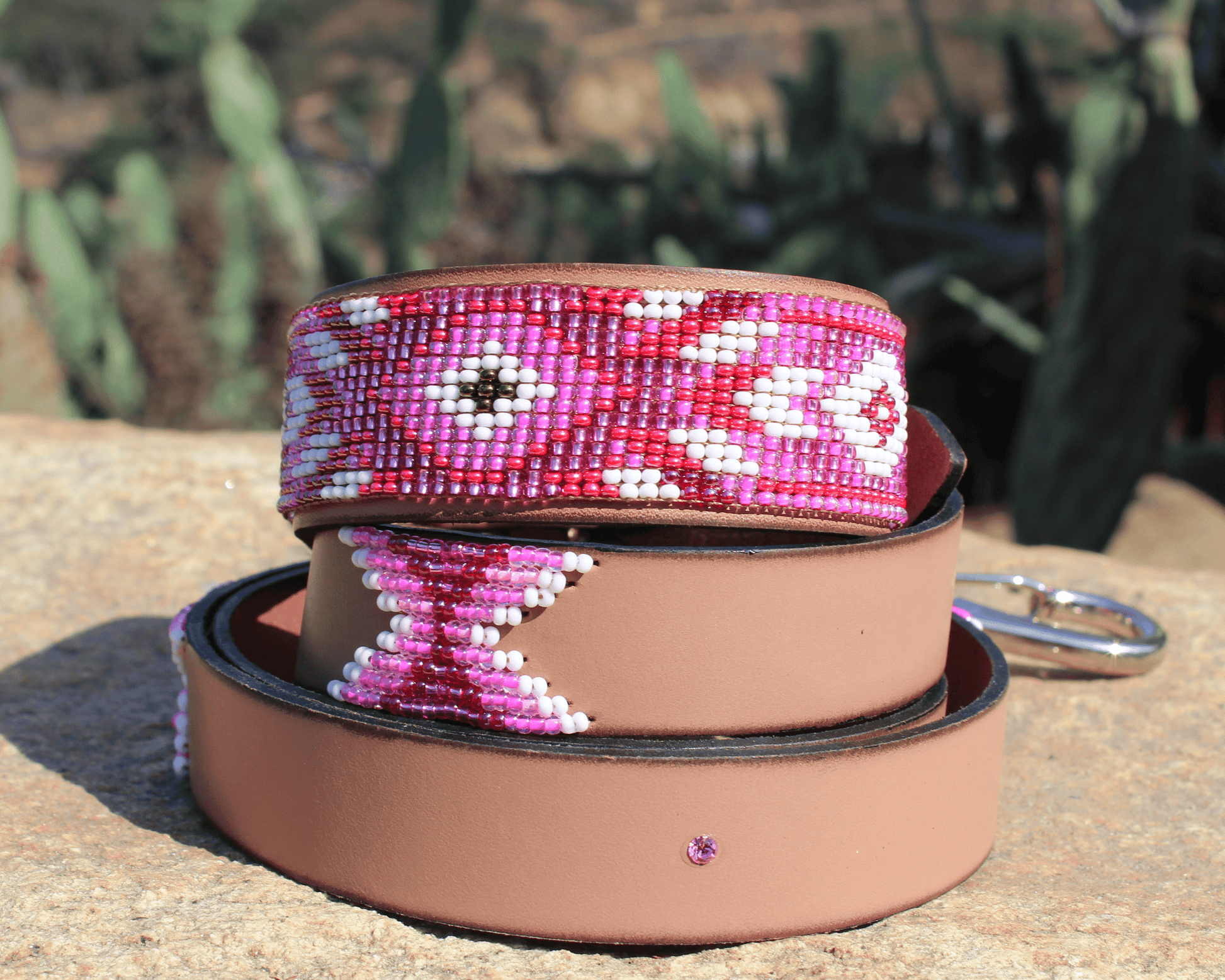 Our products are luxury master pieces, completely unique and handmade by artisan women in Brazil. The vibrant colors, sun reflecting beads and unique design will make your little baby shine. Our pieces use full grain leather which is the highest rating for leather quality. Because full grain leather has the full, complete grain of the hide, it is the most durable leather and is solely used by luxury brands. This feature makes this collar and leash very flexible and comfortable for your fur baby. Our leather is treated with organic beeswax which makes it suitable for outdoor activities such as hiking and the beach. Please note that our leather is purposely un-dyed and very pliable to provide your little pup with the highest comfort. Each bead is made of unbreakable glass and stitched one by one following the ancient Brazilian tradition of “tear beading” to make the stitching indestructible. This stitching method allows for resistance to scratching so you can be assured that the beads will not fall off. The heavy duty buckles are water resistant, so mud and water playdates are allowed. This association of high-end materials combined with artisanal expertise in the manufacturing process make our collars and leashes very long lasting and unique. Please note that your purchase will contribute to the sustainable development and empowerment of artisan women from the community of Araxa in Minas Gerais, Brazil.