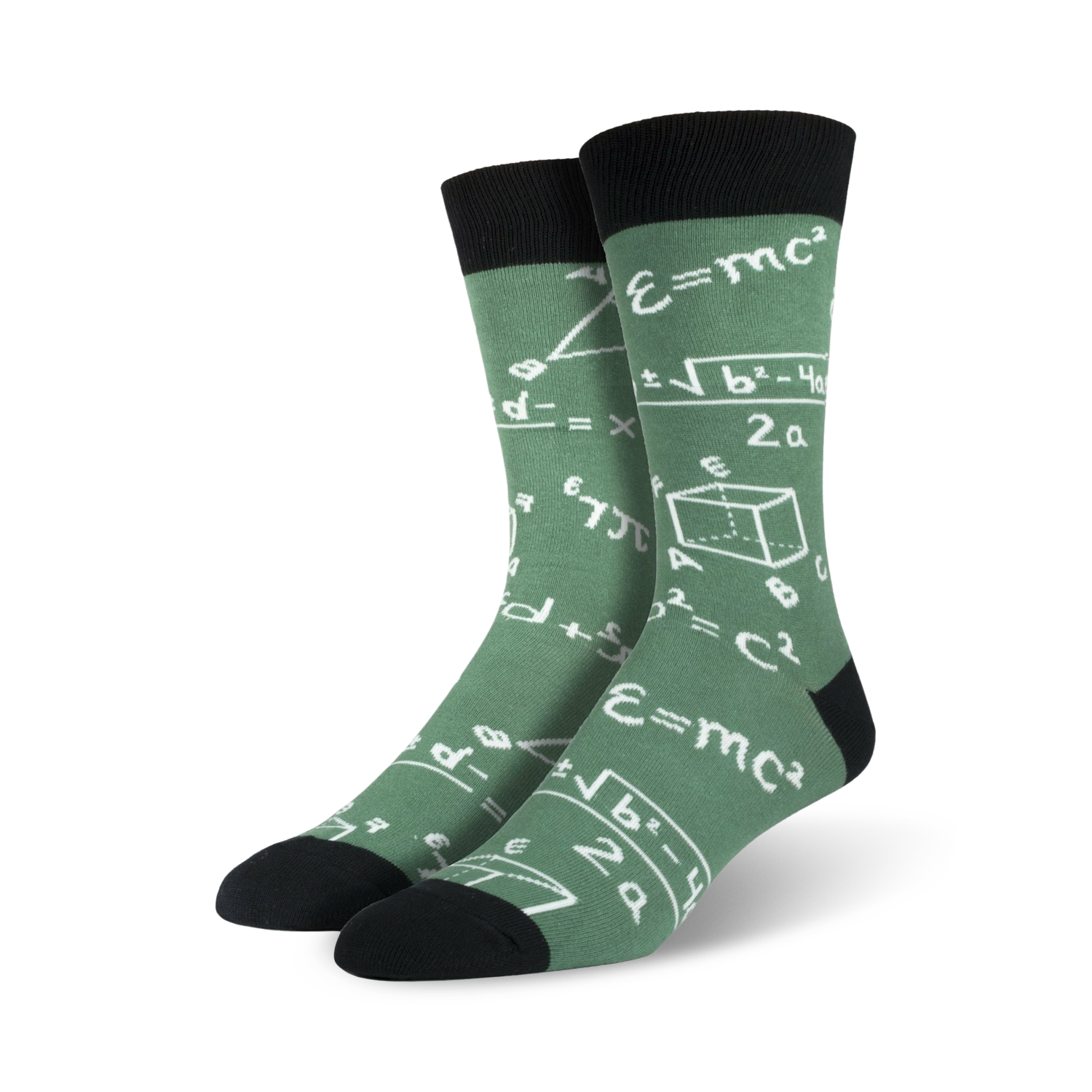 Are Pythagoras, Albert Einstein, and Stephen Hawkings your heroes? If you eat, sleep, breathe math, these awesome men's novelty crew socks were made just for you! Each cool pair features popular equations, like E=MC2, printed all over on a background resembling a chalkboard. Gift these to the scientists, engineers, and mathematicians in your life! They'll thank you for it!