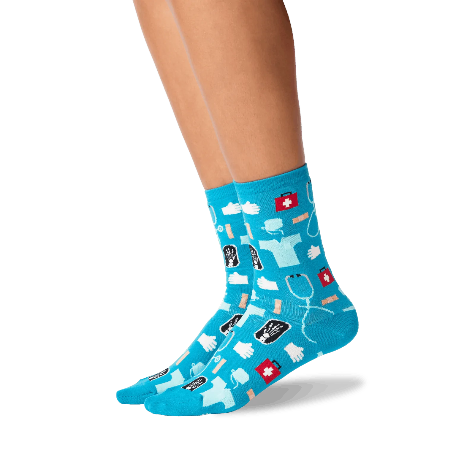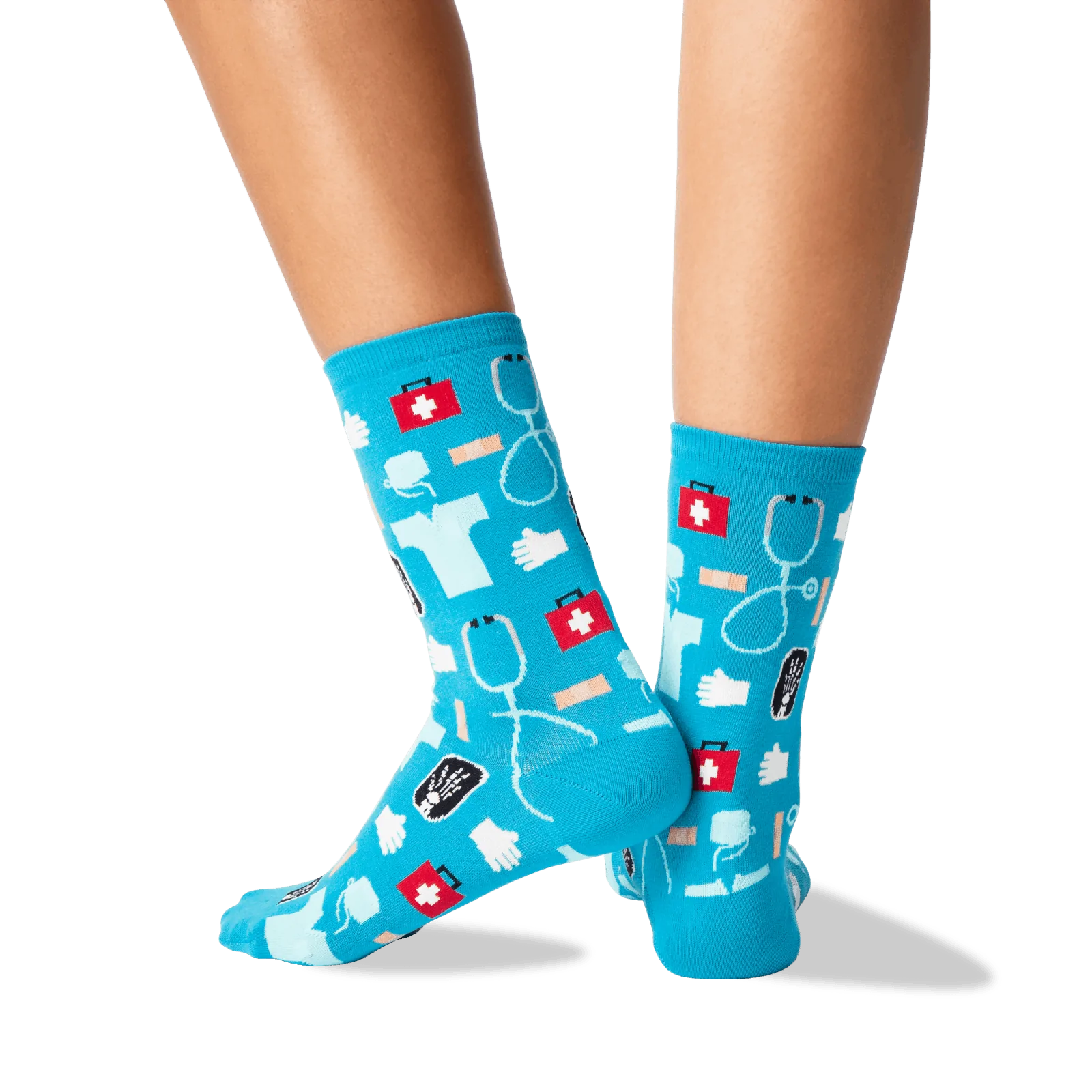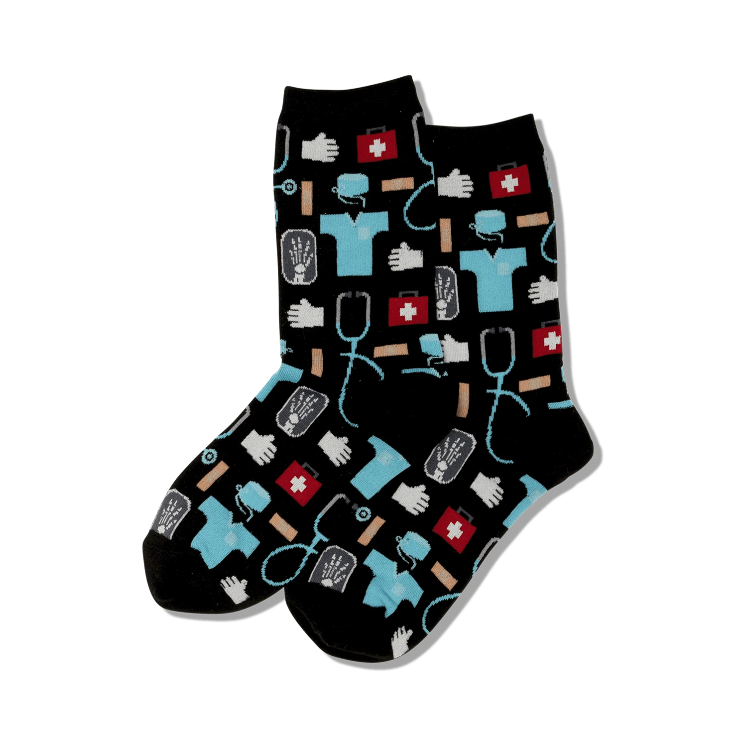 The perfect prescription for fun, these black crew socks for women are covered in medical symbols like a stethoscope, gloves, and a first aid kit. Slip on a pair and get ready for scrubs and good vibes. Talk about a clean bill of fashion!