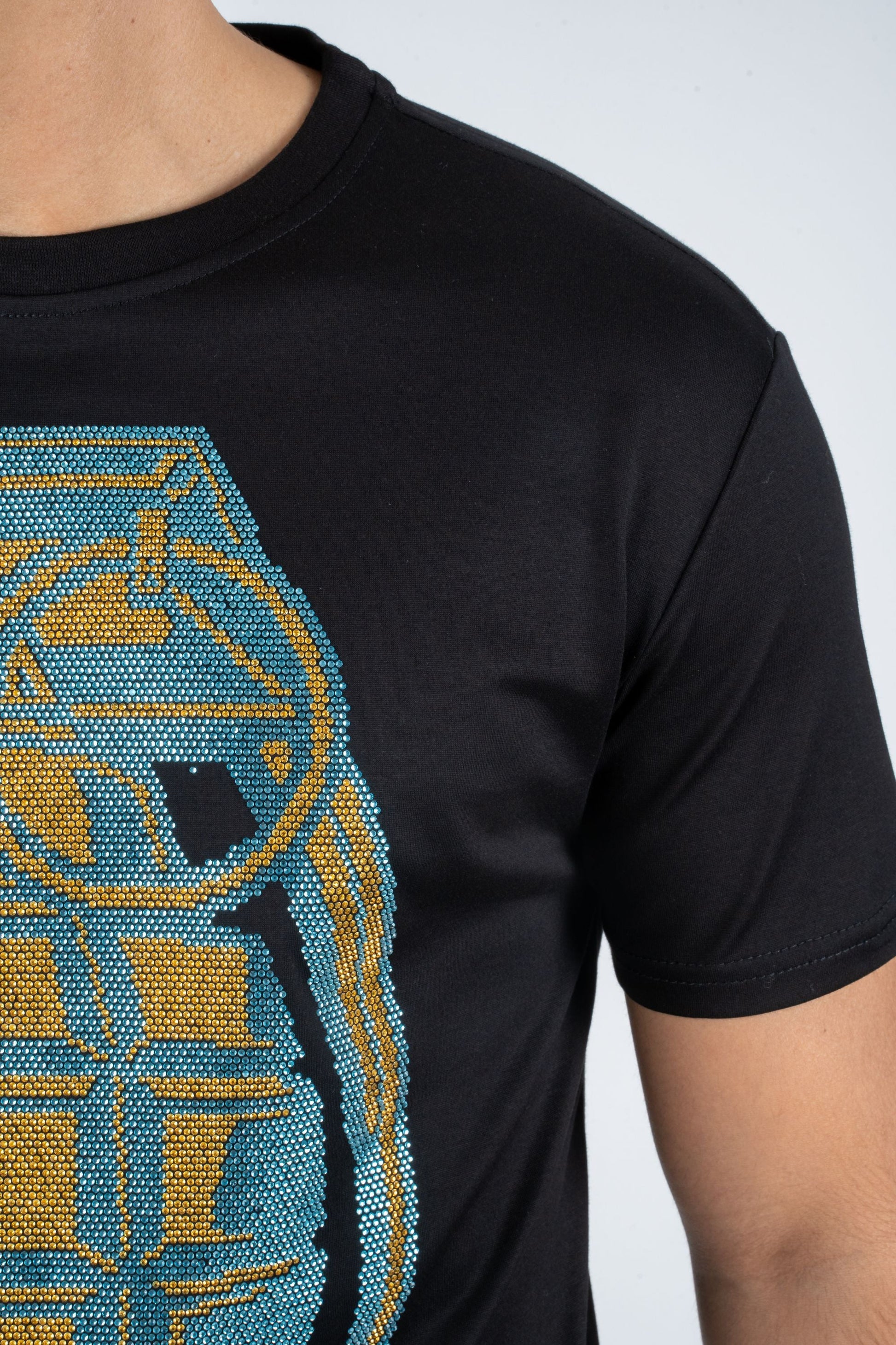 About: Platini's men relaxed-fit T-Shirt designed for a long-lasting wear with breathable cotton, spandex material and a simplistic design with rhinestones for a sport or casual look.