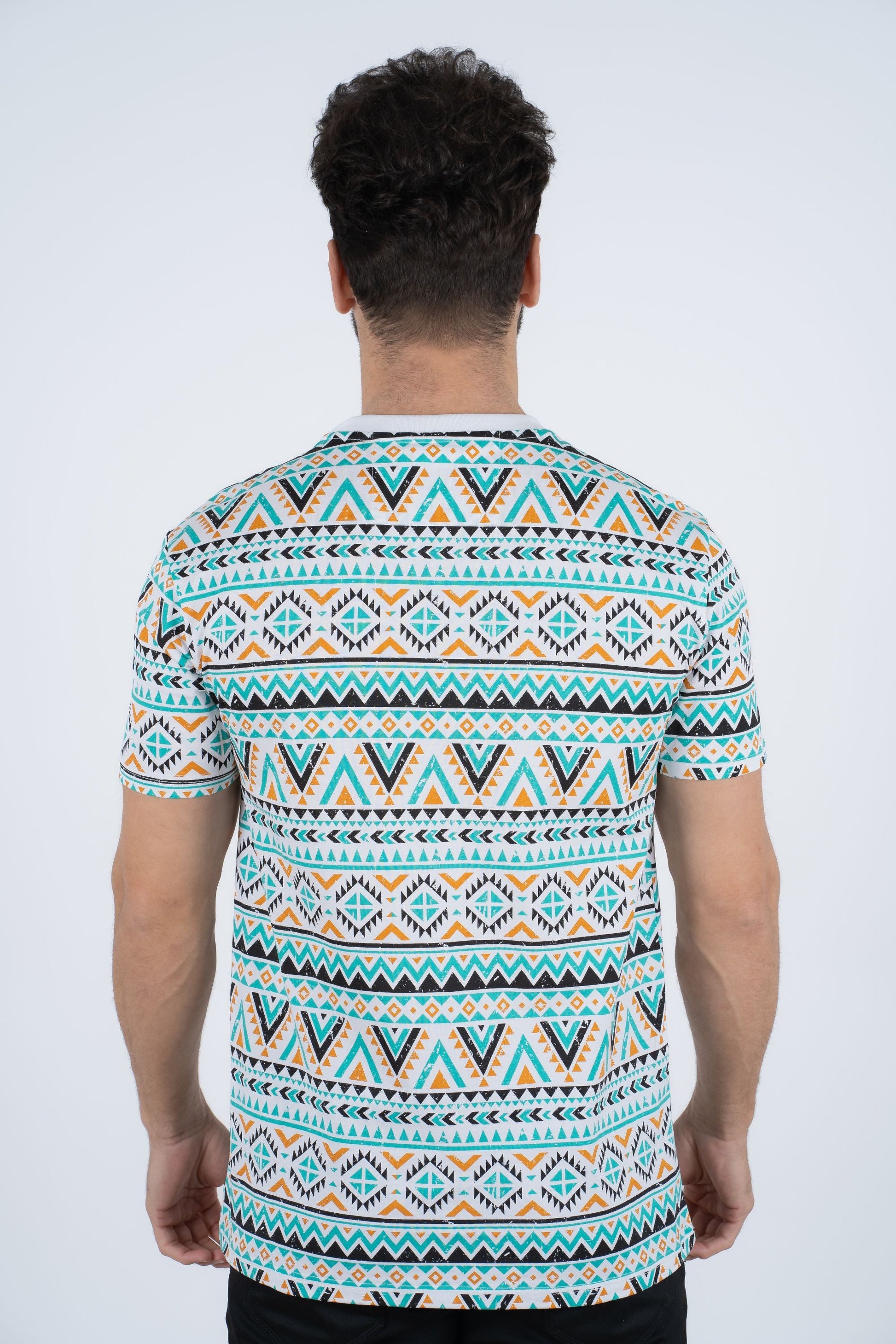 About: Platini's men relaxed-fit T-Shirt designed for a long-lasting wear with breathable cotton, spandex material and a simplistic design with aztec print for a sport or casual look.