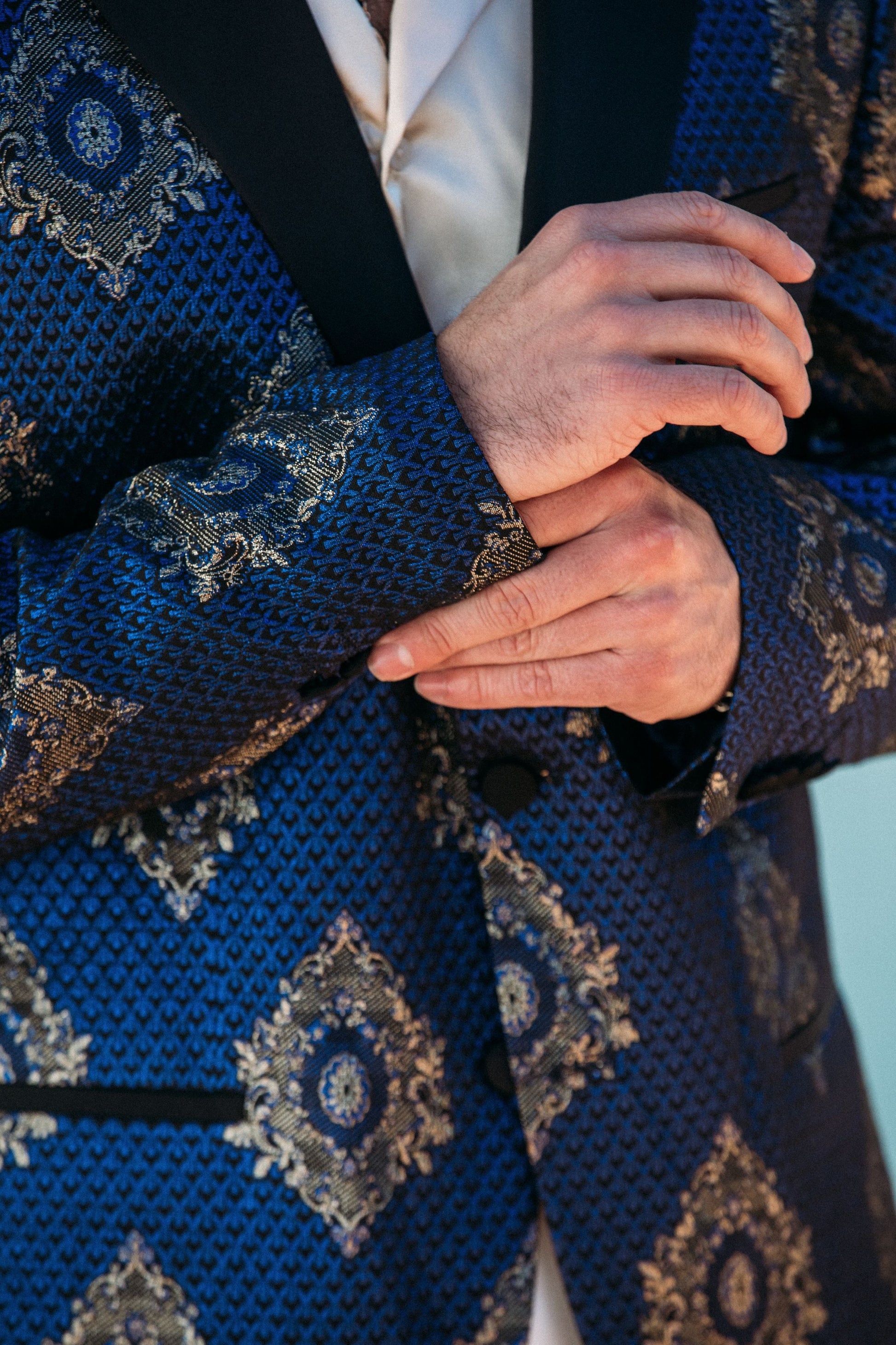 You'll cut a dashing figure in this elegant Platini Jeans men's printed jacket. The blazer is made from plain weave fabric for extra durability, and it is wrinkle-resistant to keep your look sharp. Slight stretch delivers a comfortable fit, whether you're at a formal dinner with clients or hitting the dance floor at a wedding reception.